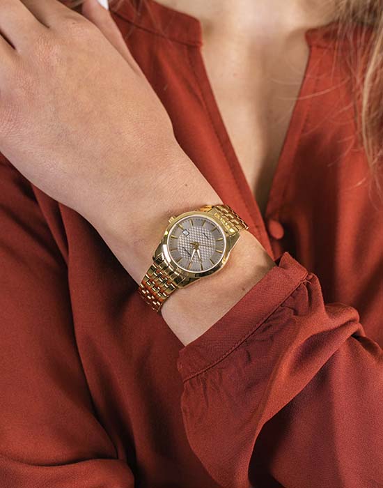 Часы Adriatica A3188.1117Q представляют собой сочетание швейцарской точности и изысканного дизайна. Эти часы из коллекции Premier созданы для тех, кто ценит утонченность и надежность. Корпус и безельБезельВнешний ободок, закрепляющий стекло. В спортивных часах так называется поворотное кольцо с делениями на циферблате, выполняет роль таймера – замеряет отрезки времени на шкале. Неподвижный безель – элемент декора. Однонаправленно вращающийся безель на дайверских часах позволяет фиксировать моменты погружения и выныривания на поверхность. этих часов выполнены из нержавеющей стали с PVDPVDУльтратонкое покрытие наносится в технике вакуумного напыления, сочетает в себе нитрид титана особой прочности со слоем золота или оксида хрома. Несёт в себе декоративную или защитную функцию. покрытием, что придает изделию элегантность и долговечность. Сердцем часов является кварцевый механизм ETA F04, обеспечивающий высокую точность хода. Сапфировое стеклоСапфировое стеклоПрочный и надёжный материал из кристалла сапфира синтетического происхождения, характеризующийся особой твёрдостью и устойчивостью к царапинам и повреждениям. защищает изящный серебристый циферблат, а люминесцентное покрытиеЛюминесцентное покрытиеПозволяет считывать показания времени в темноте. Производители наносят на стрелки, часовые индексы, безель или поверхность циферблата светонакопительный состав, дающий холодное свечение. на стрелках облегчает чтение времени в условиях низкой освещенности. Часы обладают водозащитой до 5 ATM, что делает их устойчивыми к случайным воздействиям воды. Стальной браслет, выполненный из нержавеющей стали с PVDPVDУльтратонкое покрытие наносится в технике вакуумного напыления, сочетает в себе нитрид титана особой прочности со слоем золота или оксида хрома. Несёт в себе декоративную или защитную функцию. покрытием, отличается комфортом и надежностью, а раскладная застёжкаРаскладная застёжкаТакой тип застёжки используется только на браслетах из металла. Она никогда не раскрывается полностью, происходит разделение на 2 и более частей. Раскладывающая застёжка снизит вероятность потери часов к минимуму. обеспечивает удобство ношения. Часы оснащены функцией отображения даты в окошке в положении 3 часа, что добавляет практичности в повседневной жизни.