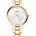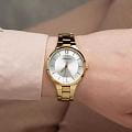 Женские кварцевые часы Adriatica A3823.1163Q — это элегантный аксессуар швейцарского производства с корпусом круглой формы, выполненным из нержавеющей стали с PVD-покрытиемPVDУльтратонкое покрытие наносится в технике вакуумного напыления, сочетает в себе нитрид титана особой прочности со слоем золота или оксида хрома. Несёт в себе декоративную или защитную функцию. в цвете жёлтое золото. Циферблат серебристого цвета оформлен с эффектом «солнечных лучей» (Sunray), дополнен центральной секундной стрелкой. Защиту обеспечивает минеральное стеклоМинеральное стеклоМинеральное стекло представляет собой искусственно выращенный минерал кварца. Такое стекло отличается особой устойчивостью к повреждениям и царапинам. Уступает по некоторым качествам сапфировому стеклу.. Браслет из нержавеющей стали с PVD-покрытиемPVDУльтратонкое покрытие наносится в технике вакуумного напыления, сочетает в себе нитрид титана особой прочности со слоем золота или оксида хрома. Несёт в себе декоративную или защитную функцию. фиксируется на раскладной застёжкеРаскладная застёжкаТакой тип застёжки используется только на браслетах из металла. Она никогда не раскрывается полностью, происходит разделение на 2 и более частей. Раскладывающая застёжка снизит вероятность потери часов к минимуму.. Водонепроницаемость 30 метров, позволит защитить корпус от случайных брызг или капель дождя.