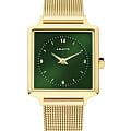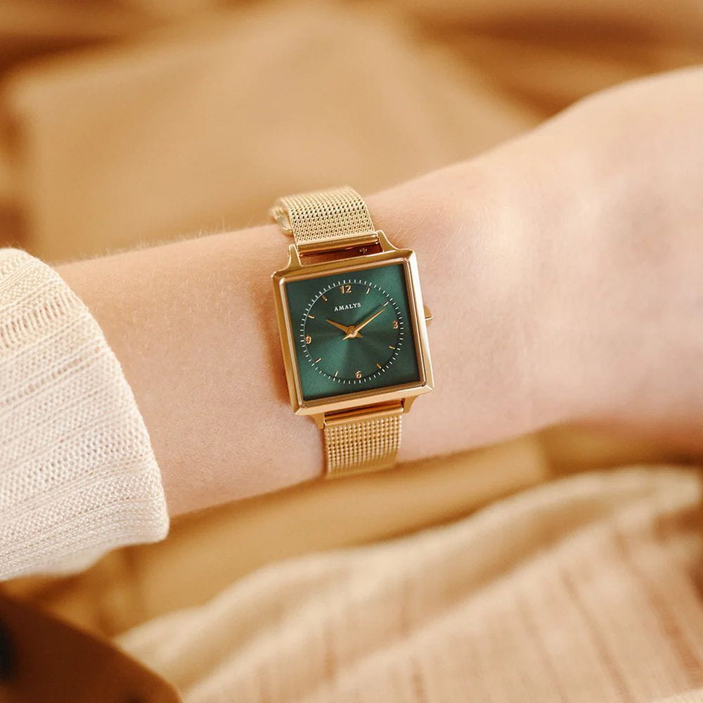 Amalys AMW-136 — женская модель с утончённой минималистичной эстетикой, где квадратный корпус с PVD-покрытиемPVDУльтратонкое покрытие наносится в технике вакуумного напыления, сочетает в себе нитрид титана особой прочности со слоем золота или оксида хрома. Несёт в себе декоративную или защитную функцию. размером 25 мм подчёркивает современный характер и чистоту линий. Механизм — точный кварцевый, обеспечивающий стабильный ход и надёжность в повседневном использовании. Поверхность циферблата оформлена в лаконичном стиле с тонкими метками и стрелками, создающими гармонию и визуальную лёгкость. Защитную функцию выполняет минеральное стеклоМинеральное стеклоМинеральное стекло представляет собой искусственно выращенный минерал кварца. Такое стекло отличается особой устойчивостью к повреждениям и царапинам. Уступает по некоторым качествам сапфировому стеклу., устойчивое к механическим воздействиям и сохраняющее читаемость при ежедневной носке. Браслет с PVD-покрытиемPVDУльтратонкое покрытие наносится в технике вакуумного напыления, сочетает в себе нитрид титана особой прочности со слоем золота или оксида хрома. Несёт в себе декоративную или защитную функцию. выполнен в виде «миланской сетки» шириной 14 мм, оснащён раскладным замкомРаскладной замокДанный вариант застежки используется только на часах с металлическим браслетом. Отличительная особенность такого крепления в том, что длина браслета становится универсальной и вы можете самостоятельно отрегулировать нужный вам размер – застежка просто двигается по браслету часов., его гибкая структура обеспечивает комфортное прилегание к запястью и визуальную утончённость. Единство корпуса и браслета создаёт целостный образ, а изысканная простота дизайна делает модель универсальной — она одинаково уместна и в деловой обстановке, и в повседневных сочетаниях.