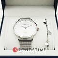 Amalys AMW-194 — женский набор, включающий часы и браслет, выполненный в едином элегантном стиле. Круглый корпус диаметром 33 мм изготовлен из нержавеющей стали, что подчёркивает изысканный характер модели. Защитную функцию выполняет сапфировое стеклоСапфировое стеклоПрочный и надёжный материал из кристалла сапфира синтетического происхождения, характеризующийся особой твёрдостью и устойчивостью к царапинам и повреждениям., стойкое к царапинам и сохраняющее прозрачность. Механизм — кварцевый, обеспечивающий точность хода и удобство в использовании. Водозащита 3 ATM защищает от случайных брызг и дождя. Циферблат оформлен в минималистичном стиле с тонкими метками и изящными стрелками, подчёркивающими женственный образ. Стальной браслет миланского плетения на раскладном замкеРаскладной замокДанный вариант застежки используется только на часах с металлическим браслетом. Отличительная особенность такого крепления в том, что длина браслета становится универсальной и вы можете самостоятельно отрегулировать нужный вам размер – застежка просто двигается по браслету часов. мягко облегает запястье и гармонично сочетается с корпусом. Дополняющий набор браслет усиливает впечатление цельности и придаёт образу завершённость.