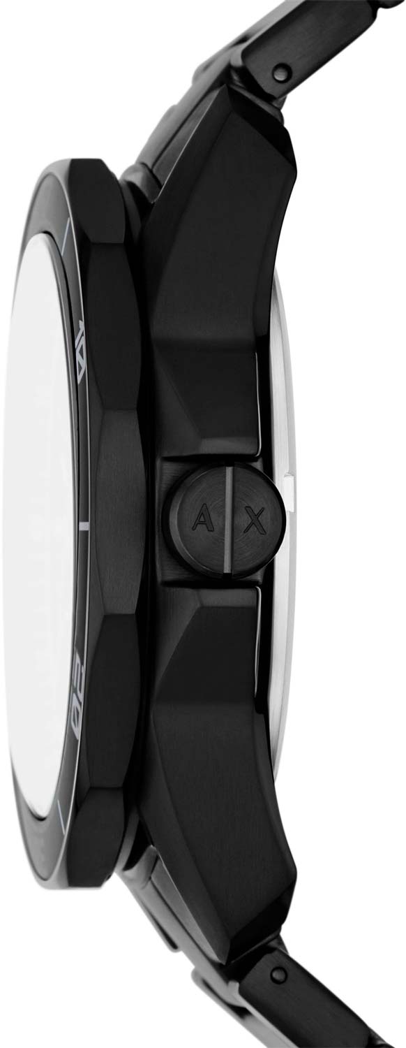 Мужские наручные часы с минеральным стекломМинеральное стеклоМинеральное стекло представляет собой искусственно выращенный минерал кварца. Такое стекло отличается особой устойчивостью к повреждениям и царапинам. Уступает по некоторым качествам сапфировому стеклу. Armani Exchange Dante AX1952, кварцевый механизм с высокой точностью. Класс водозащиты: 100 метров, позволит плавать, нырять и заниматься другими водными видами спорта. Корпус часов изготовлен из стали с IP-покрытиемIP-покрытиеМетод ионного напыления. Демонстрирует повышенную устойчивость к истиранию, окислению и химическим веществам. Под воздействием высокого давления и температуры около 1500°C молекулы металла надёжно соединяются с частицами корпуса часов.. Стальной браслет с IP-покрытиемIP-покрытиеМетод ионного напыления. Демонстрирует повышенную устойчивость к истиранию, окислению и химическим веществам. Под воздействием высокого давления и температуры около 1500°C молекулы металла надёжно соединяются с частицами корпуса часов. на раскладной застёжкеРаскладная застёжкаТакой тип застёжки используется только на браслетах из металла. Она никогда не раскрывается полностью, происходит разделение на 2 и более частей. Раскладывающая застёжка снизит вероятность потери часов к минимуму.. Вращающийся безельБезельВнешний ободок, закрепляющий стекло. В спортивных часах так называется поворотное кольцо с делениями на циферблате, выполняет роль таймера – замеряет отрезки времени на шкале. Неподвижный безель – элемент декора. Однонаправленно вращающийся безель на дайверских часах позволяет фиксировать моменты погружения и выныривания на поверхность. с IP-покрытиемIP-покрытиеМетод ионного напыления. Демонстрирует повышенную устойчивость к истиранию, окислению и химическим веществам. Под воздействием высокого давления и температуры около 1500°C молекулы металла надёжно соединяются с частицами корпуса часов.. Текстурированный циферблат с метками в виде штрихов. Окошко даты находится в положении 6 часов.