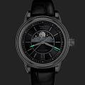Циферблат в стиле Art Deco украшает усложнение фаз Луны в верхней половине, обрамлённой тонким кольцом облаков. Отмечено окно даты в положении «6 часов». Стрелки и накладные метки обработаны люминесцентным покрытиемЛюминесцентное покрытиеПозволяет считывать показания времени в темноте. Производители наносят на стрелки, часовые индексы, безель или поверхность циферблата светонакопительный состав, дающий холодное свечение. Superluminova — для уверенного считывания в темноте. Поверхность защищена сапфировым стекломСапфировое стеклоПрочный и надёжный материал из кристалла сапфира синтетического происхождения, характеризующийся особой твёрдостью и устойчивостью к царапинам и повреждениям. с антибликовым покрытием.