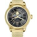 Стальной браслет миланского плетения с PVD-покрытиемPVDУльтратонкое покрытие наносится в технике вакуумного напыления, сочетает в себе нитрид титана особой прочности со слоем золота или оксида хрома. Несёт в себе декоративную или защитную функцию. на раскладном замкеРаскладной замокДанный вариант застежки используется только на часах с металлическим браслетом. Отличительная особенность такого крепления в том, что длина браслета становится универсальной и вы можете самостоятельно отрегулировать нужный вам размер – застежка просто двигается по браслету часов., сочетая комфорт, элегантность и практичность.
