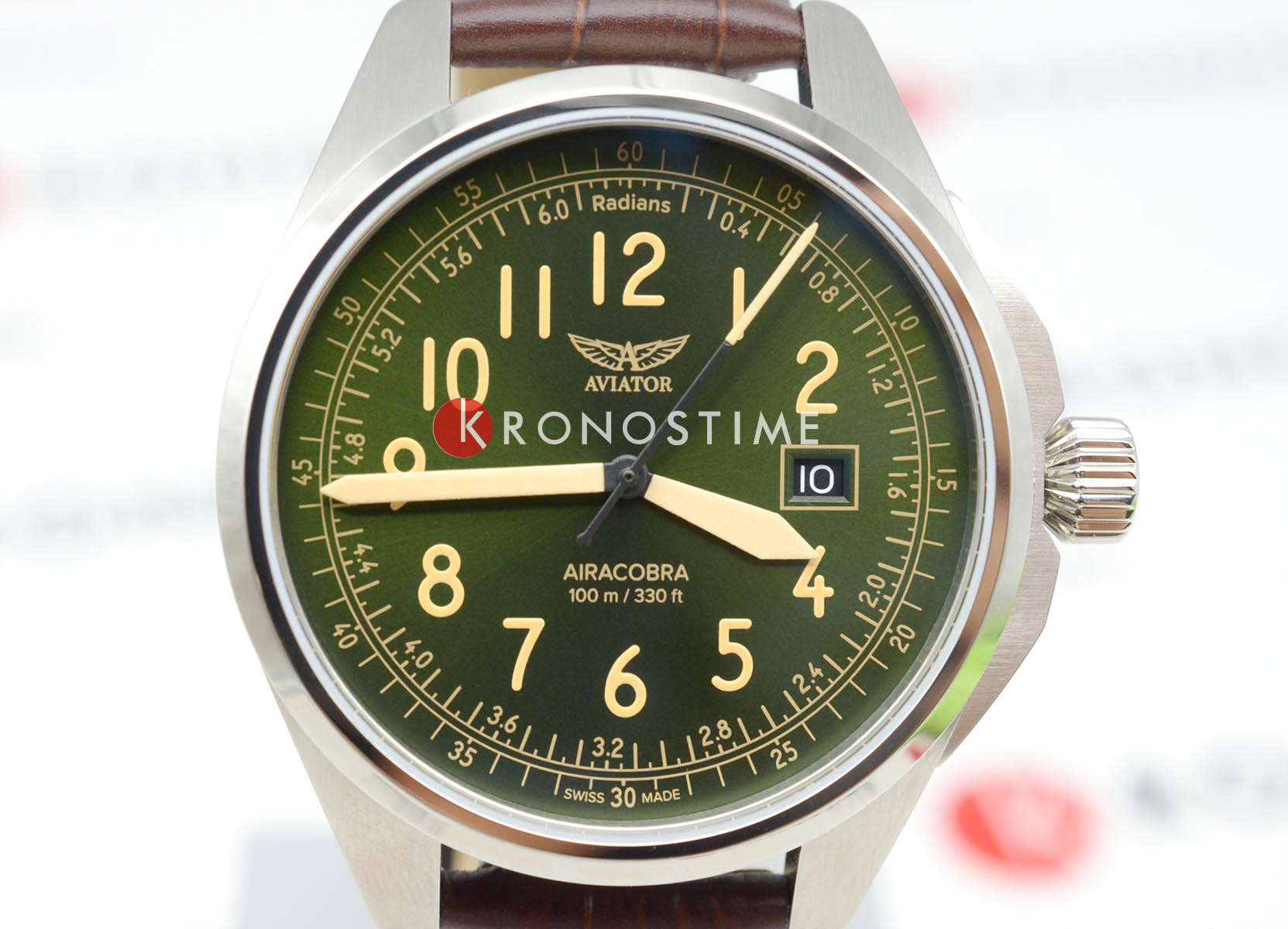 Aviator V.1.38.0.329.4 “Airacobra 43 Type A” — надёжные швейцарские пилотские часы с насыщенным функционалом и строгим авиационным дизайном. Корпус диаметром 42,8 мм выполнен из нержавеющей стали.