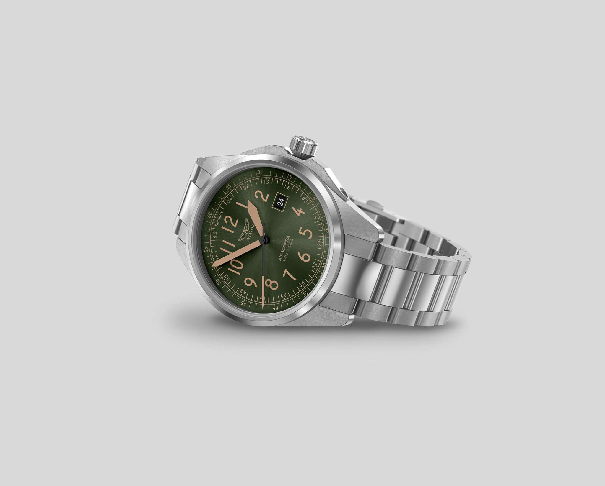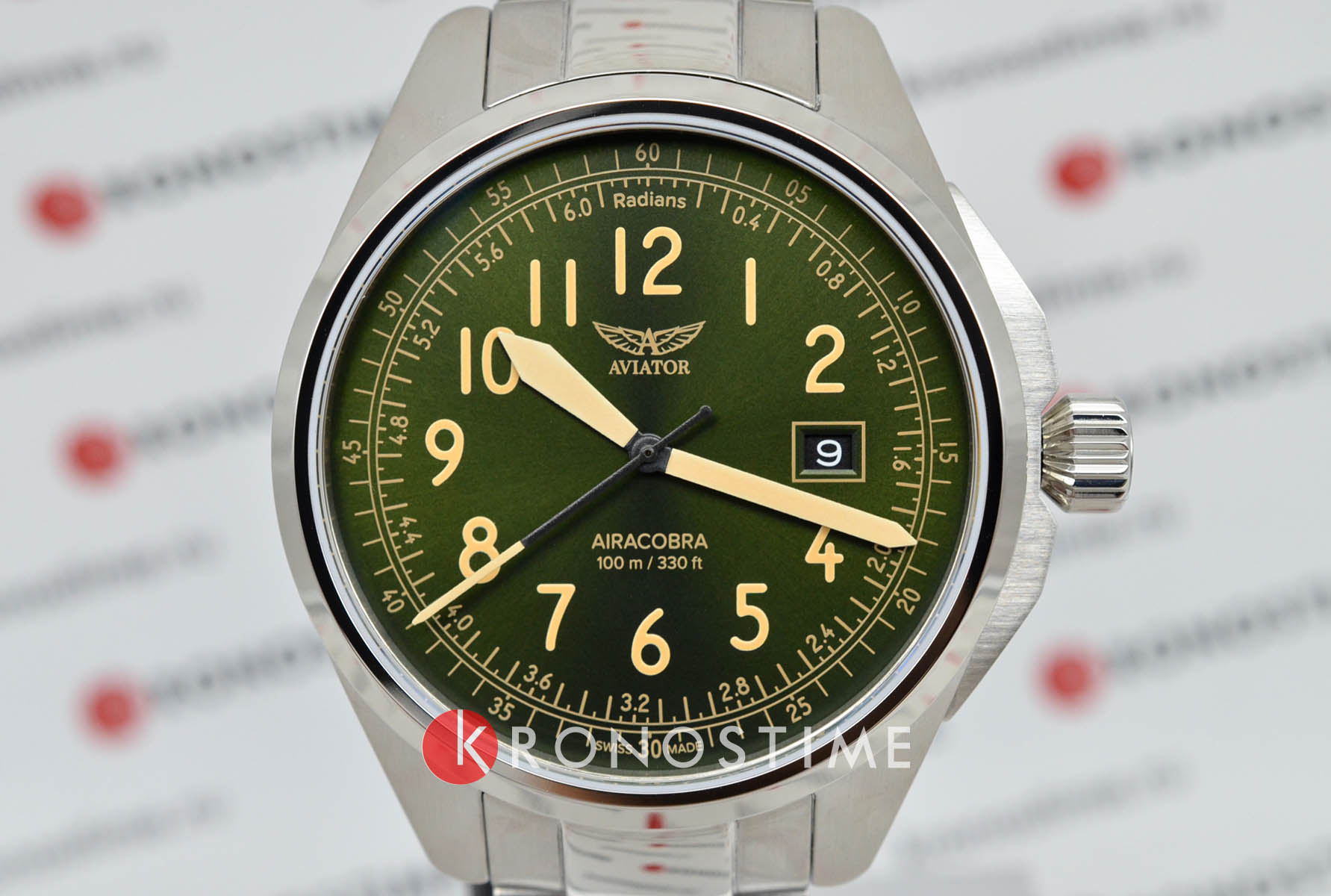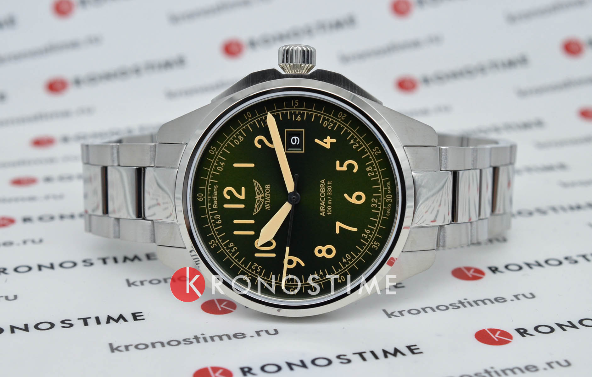 Aviator V.1.38.0.329.5 “Airacobra 43 Type A” — надёжные швейцарские пилотские часы с насыщенным функционалом и строгим авиационным дизайном. Корпус диаметром 42,8 мм выполнен из нержавеющей стали.