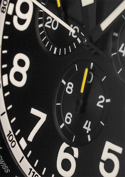 Aviator Airacobra P45 Chrono V.2.25.5.169.5 — швейцарские часы в духе пилотских инструментов, объединяющий точность, удобство и лаконичный дизайн. Диаметр корпуса — 45 мм, выполнен из нержавеющей стали 316L с PVD-покрытиемPVDУльтратонкое покрытие наносится в технике вакуумного напыления, сочетает в себе нитрид титана особой прочности со слоем золота или оксида хрома. Несёт в себе декоративную или защитную функцию., что подчёркивает техническую надёжность в образе часов. Циферблат оформлен в классическом aviator-стиле: крупные арабские цифры, широкие стрелки и чёткое деление минут позволяют считывать время мгновенно. Стрелки и метки покрыты люминесцентным покрытиемЛюминесцентное покрытиеПозволяет считывать показания времени в темноте. Производители наносят на стрелки, часовые индексы, безель или поверхность циферблата светонакопительный состав, дающий холодное свечение. Superluminova для отличной читаемости при слабом освещении. Циферблат защищён стойким сапфировым стекломСапфировое стеклоПрочный и надёжный материал из кристалла сапфира синтетического происхождения, характеризующийся особой твёрдостью и устойчивостью к царапинам и повреждениям. с антибликовым покрытиемАнтибликовое покрытиеСлой оксида металла в 0,13-0,3 микрон, благодаря которому стекло часов не бликует и не отражает свет. Антибликовое покрытие уменьшает отражение света в 10 раз, обеспечивая отличную читаемость показателей циферблата.. У модели присутствуют дата и точный откидной механизм завинчивающейся заводной головки и задней крышки, обеспечивающий надёжную водозащиту до 100 м и защиту от ударов. Внутри установлен швейцарский кварцевый механизм, который обеспечивает функции хронографаХронографФункция позволяет измерять отрезки времени с особой точностью: часы, минуты, секунды. Верным признаком хронографа является наличие на циферблате 3 дополнительных окошек-счётчиков.. Функции добавить (ADD) и разделить (SPLIT). Часы комплектуются браслетом из нержавеющей стали с PVD-покрытиемPVDУльтратонкое покрытие наносится в технике вакуумного напыления, сочетает в себе нитрид титана особой прочности со слоем золота или оксида хрома. Несёт в себе декоративную или защитную функцию. с удобной раскладной застёжкойРаскладная застёжкаТакой тип застёжки используется только на браслетах из металла. Она никогда не раскрывается полностью, происходит разделение на 2 и более частей. Раскладывающая застёжка снизит вероятность потери часов к минимуму., обеспечивающей надёжную фиксацию и комфорт при ежедневной носке. Эти изысканные часы так же обладают функциями тахиметраТахиметрРазмеченная шкала, располагается на ободке или безеле часов. Тахиметр позволяет рассчитать скорость на определённом участке пути, расстояние измеряется в километрах или милях., секундомераСекундомерСекундоме́р — прибор, способный измерять интервалы времени с точностью до долей секунды. и телеметра. Airacobra — это практичный и стильный инструмент для путешествий и активной повседневности, объединяющий авиационную эстетику, точный механизм и удобство.
