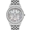 Американские женские часы с минеральным стекломМинеральное стеклоМинеральное стекло представляет собой искусственно выращенный минерал кварца. Такое стекло отличается особой устойчивостью к повреждениям и царапинам. Уступает по некоторым качествам сапфировому стеклу. Beverly Hills Polo Club BP3563X.320, кварцевый механизм с высокой точностью. Корпус часов изготовлен из нержавеющей стали. На циферблате расположены три дополнительных индикатора (24-х часовой формат времени, день недели и дата) и шкала тахиметрТахиметрРазмеченная шкала, располагается на ободке или безеле часов. Тахиметр позволяет рассчитать скорость на определённом участке пути, расстояние измеряется в километрах или милях.. Класс водозащиты: 50 метров, позволит защитить корпус от случайных брызг или капель дождя. Стальной браслет с частичным на застёжке бабочке. БезельБезельВнешний ободок, закрепляющий стекло. В спортивных часах так называется поворотное кольцо с делениями на циферблате, выполняет роль таймера – замеряет отрезки времени на шкале. Неподвижный безель – элемент декора. Однонаправленно вращающийся безель на дайверских часах позволяет фиксировать моменты погружения и выныривания на поверхность. и циферблат инкрустирован кристаллами.