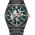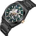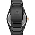 Модель оснащена механизмом, обеспечивающим точное измерение времени. Металлический браслет черного цвета PVD-покрытиемPVDУльтратонкое покрытие наносится в технике вакуумного напыления, сочетает в себе нитрид титана особой прочности со слоем золота или оксида хрома. Несёт в себе декоративную или защитную функцию. дополнен раскладной застёжкой с кнопкойРаскладная застёжкаТакой тип застёжки используется только на браслетах из металла. Она никогда не раскрывается полностью, происходит разделение на 2 и более частей. Раскладывающая застёжка снизит вероятность потери часов к минимуму., которая обеспечивает комфортное ношение и надёжную фиксацию.