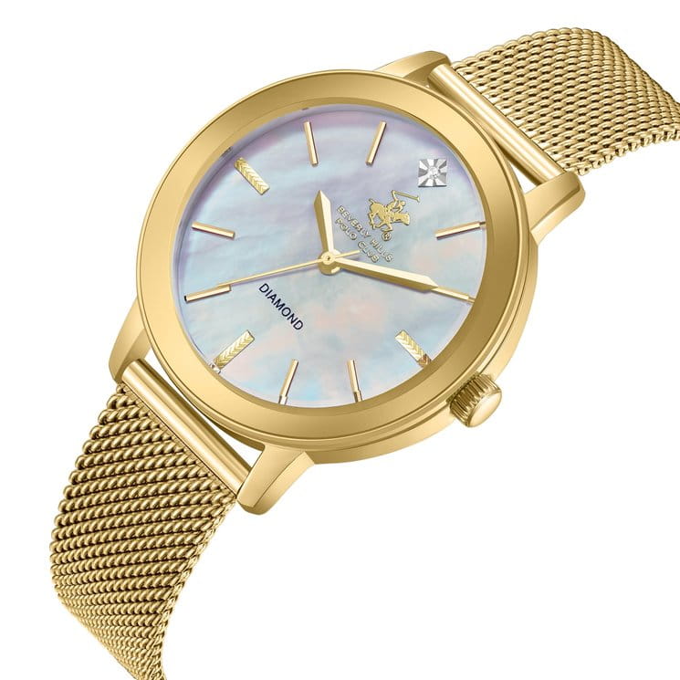 Женские наручные часы Beverly Hills Polo Club BP3734C.120 сочетают в себе элегантный дизайн и надежность современных технологий. Модель обладает круглым корпусом, изготовленным из нержавеющей стали с IP-покрытиемIP-покрытиеМетод ионного напыления. Демонстрирует повышенную устойчивость к истиранию, окислению и химическим веществам. Под воздействием высокого давления и температуры около 1500°C молекулы металла надёжно соединяются с частицами корпуса часов., что обеспечивает долговечность и устойчивость к внешним воздействиям. Для защиты циферблата используется минеральное стеклоМинеральное стеклоМинеральное стекло представляет собой искусственно выращенный минерал кварца. Такое стекло отличается особой устойчивостью к повреждениям и царапинам. Уступает по некоторым качествам сапфировому стеклу., которое эффективно противостоит царапинам. Часы оснащены кварцевым механизмом, гарантирующим точное время без необходимости подзаводки. Водонепроницаемость модели достигает 50 метров (WR 50), что позволяет использовать их при контакте с водой, например, во время мытья рук или дождя. Стальной браслет миланского плетения с IP-покрытиемIP-покрытиеМетод ионного напыления. Демонстрирует повышенную устойчивость к истиранию, окислению и химическим веществам. Под воздействием высокого давления и температуры около 1500°C молекулы металла надёжно соединяются с частицами корпуса часов. на раскладном замкеРаскладной замокДанный вариант застежки используется только на часах с металлическим браслетом. Отличительная особенность такого крепления в том, что длина браслета становится универсальной и вы можете самостоятельно отрегулировать нужный вам размер – застежка просто двигается по браслету часов., обеспечивающей комфортное ношение и безопасность. Диаметр корпуса составляет 35 мм, что делает модель изящной и подходящей для повседневного использования.