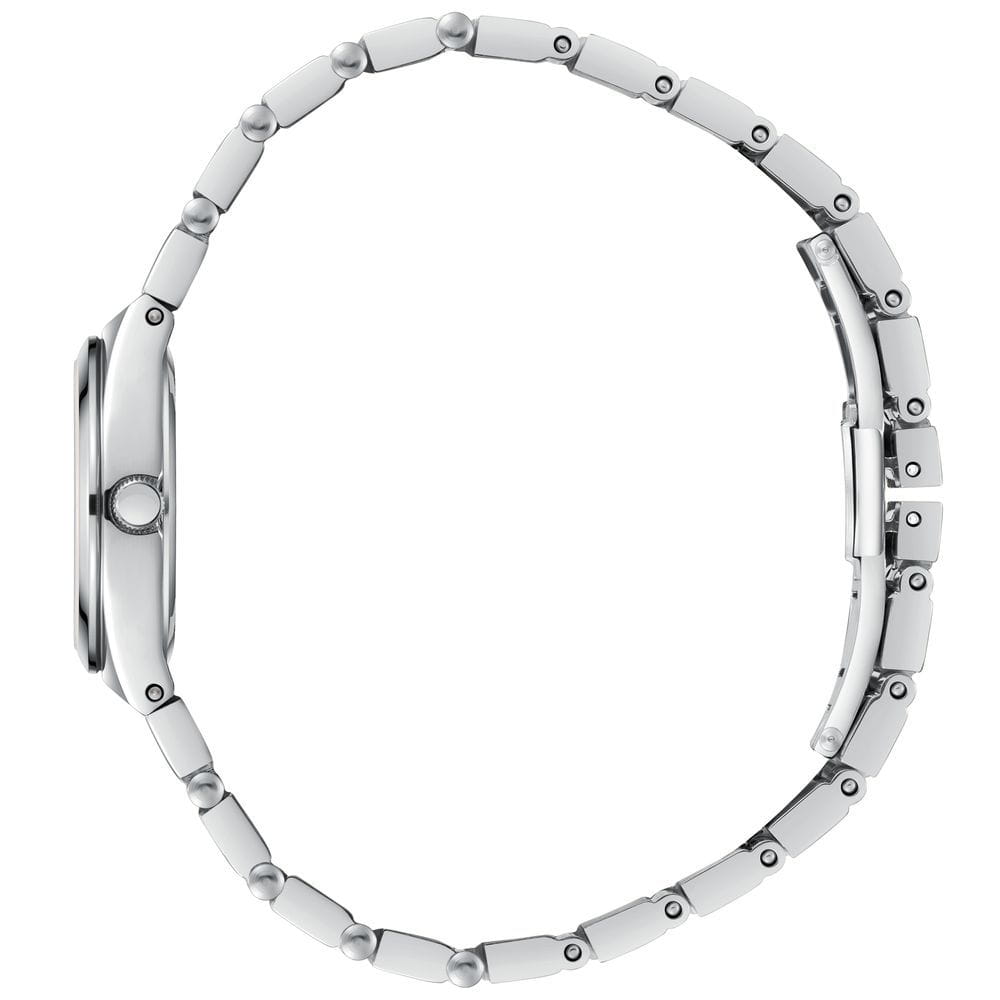Стальной браслет на застёжке-бабочке с кнопкамиЗастёжка "бабочка"Такой вид застёжки дополняется предохранителями, помогающими избежать случайного раскрытия браслета. Обладают изящным исполнением. . Часы обладают водозащитой до 30 метров, позволит защитить корпус от случайных брызг или капель дождя. Синтетический бриллиант придает часам неповторимый шарм и изысканность.