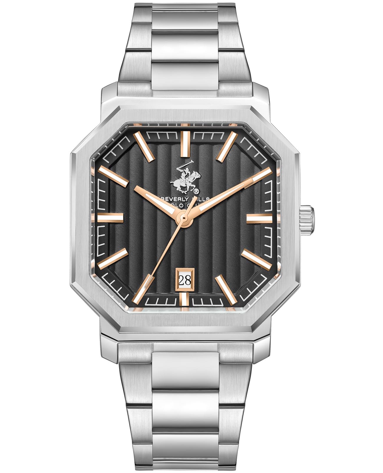 Американские мужские часы Beverly Hills Polo Club BP3793X.360 - это стильный мужской аксессуар, который сочетает элегантный дизайн и практичность. Корпус выполнен из нержавеющей стали серебристого цвета, диаметром 38 мм, что обеспечивает долговечность и утончённый внешний вид. Надежное минеральное стеклоМинеральное стеклоМинеральное стекло представляет собой искусственно выращенный минерал кварца. Такое стекло отличается особой устойчивостью к повреждениям и царапинам. Уступает по некоторым качествам сапфировому стеклу. с сапфировым покрытием защищает циферблат от царапин и обеспечивает долговечность. Модель оснащена кварцевым механизмом, обеспечивающим высокую точность хода. Стальной браслет на застёжке-бабочке с кнопкамиЗастёжка "бабочка"Такой вид застёжки дополняется предохранителями, помогающими избежать случайного раскрытия браслета. Обладают изящным исполнением. обеспечивает комфортное ношение. Окошко даты находится в положении 6 часов. Стрелки и метки с люминесцентным покрытиемЛюминесцентное покрытиеПозволяет считывать показания времени в темноте. Производители наносят на стрелки, часовые индексы, безель или поверхность циферблата светонакопительный состав, дающий холодное свечение. позволяют легко считывать время даже в условиях недостаточного освещения. Водозащита 50 метров позволит защитить корпус от случайных брызг или капель дождя. Эта модель – отличный выбор для тех, кто ищет сочетание стиля, качества и функциональности. Часы станут не только полезным аксессуаром, но и выразительным элементом вашего имиджа.