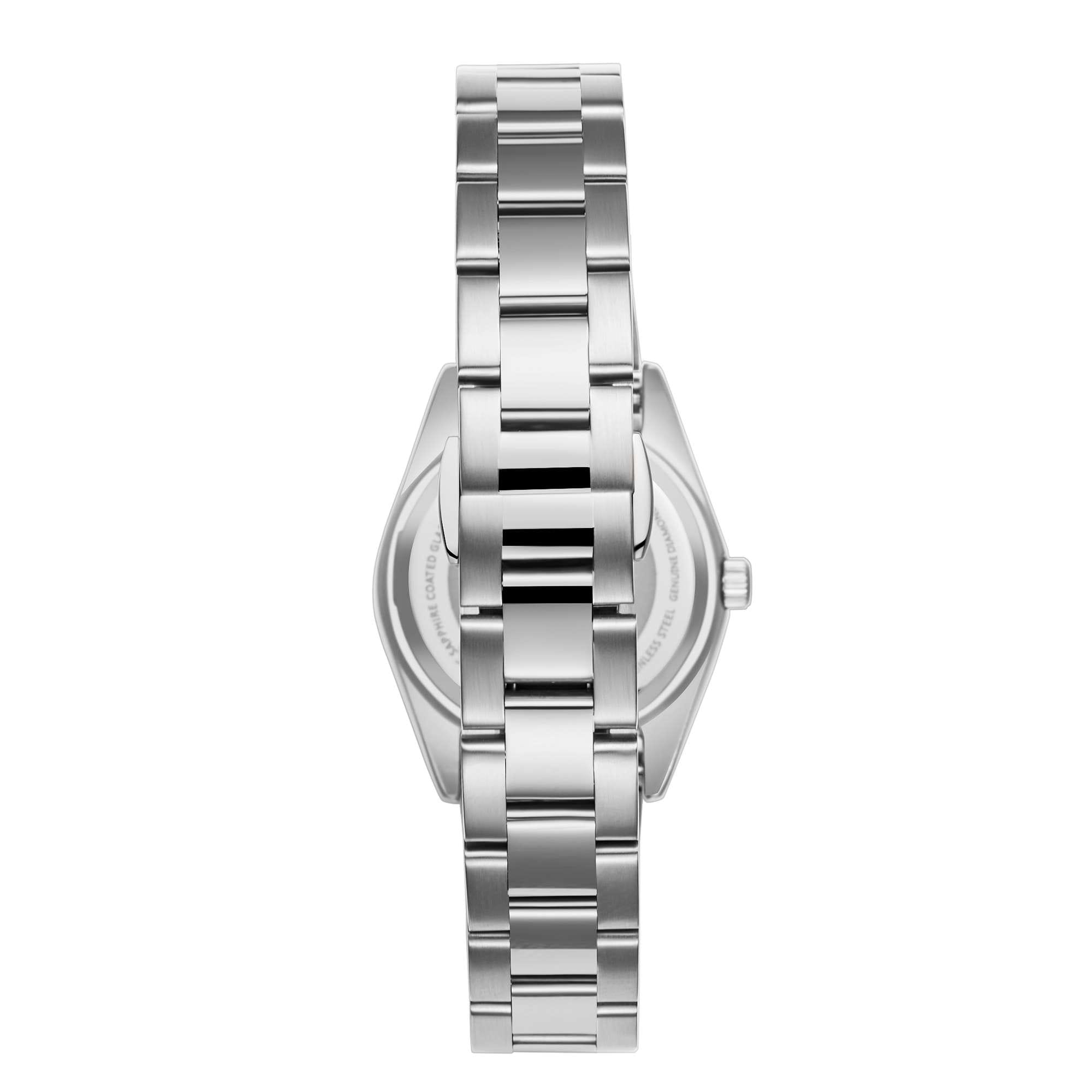 Американские женские часы Beverly Hills Polo Club BP3794X.350 - это стильный женский аксессуар, который сочетает элегантный дизайн и практичность. Корпус выполнен из нержавеющей стали серебристого цвета, диаметром 34,5 мм, что обеспечивает долговечность и утончённый внешний вид. Надежное минеральное стеклоМинеральное стеклоМинеральное стекло представляет собой искусственно выращенный минерал кварца. Такое стекло отличается особой устойчивостью к повреждениям и царапинам. Уступает по некоторым качествам сапфировому стеклу. с сапфировым покрытием защищает циферблат от царапин и обеспечивает долговечность. Метки в виде штрихов, в позиции "6 часов" инкрустирован синтетический бриллиант. Модель оснащена кварцевым механизмом, обеспечивающим высокую точность хода. Стальной браслет на застёжке-бабочке с кнопкамиЗастёжка "бабочка"Такой вид застёжки дополняется предохранителями, помогающими избежать случайного раскрытия браслета. Обладают изящным исполнением. обеспечивает комфортное ношение. Стрелки и метки оснащены люминесцентным покрытиемЛюминесцентное покрытиеПозволяет считывать показания времени в темноте. Производители наносят на стрелки, часовые индексы, безель или поверхность циферблата светонакопительный состав, дающий холодное свечение., обеспечивающим отличную видимость даже при слабом освещении. Окошко даты находится в положении 3 часа. Водозащита 30 метров позволит защитить корпус от случайных брызг или капель дождя. Эта модель – отличный выбор для тех, кто ищет сочетание стиля, качества и функциональности. Часы станут не только полезным аксессуаром, но и выразительным элементом вашего имиджа.