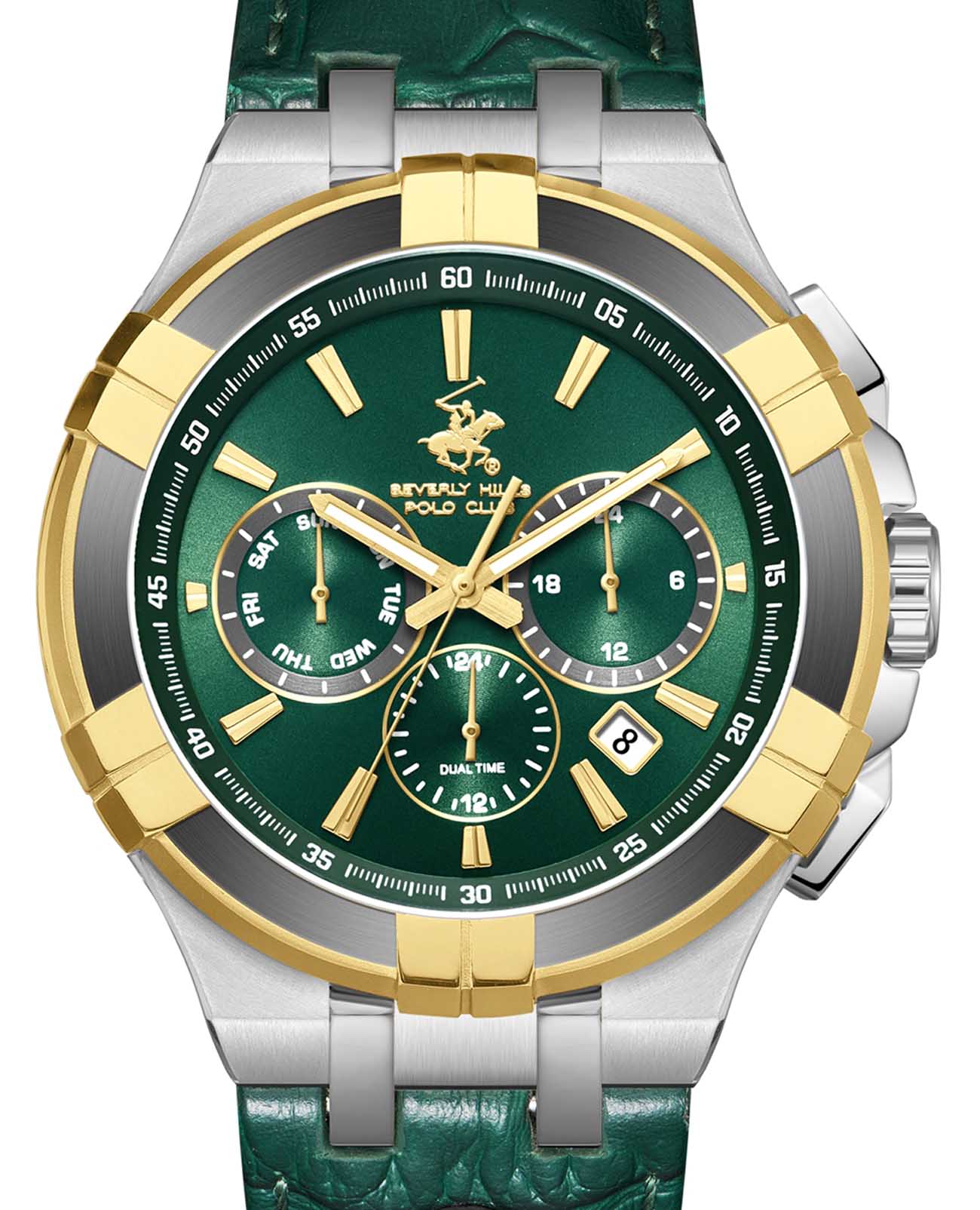 Американские мужские часы Beverly Hills Polo Club BP3803X.277 - это стильный мужской аксессуар, который сочетает элегантный дизайн и практичность. Корпус выполнен из нержавеющей стали, диаметром 44 мм, что обеспечивает долговечность и утончённый внешний вид. Надежное минеральное стеклоМинеральное стеклоМинеральное стекло представляет собой искусственно выращенный минерал кварца. Такое стекло отличается особой устойчивостью к повреждениям и царапинам. Уступает по некоторым качествам сапфировому стеклу. с сапфировым покрытием защищает циферблат от царапин и обеспечивает долговечность. Неподвижный безельБезельВнешний ободок, закрепляющий стекло. В спортивных часах так называется поворотное кольцо с делениями на циферблате, выполняет роль таймера – замеряет отрезки времени на шкале. Неподвижный безель – элемент декора. Однонаправленно вращающийся безель на дайверских часах позволяет фиксировать моменты погружения и выныривания на поверхность. с IP-покрытиемIP-покрытиеМетод ионного напыления. Демонстрирует повышенную устойчивость к истиранию, окислению и химическим веществам. Под воздействием высокого давления и температуры около 1500°C молекулы металла надёжно соединяются с частицами корпуса часов. черно-золотого цвета. Модель оснащена кварцевым механизмом, обеспечивающим высокую точность хода. Кожаный ремешок на стандартной застёжке обеспечивает комфортное ношение. Окошко даты находится в положении между 4 и 5 часов. Стрелки с люминесцентным покрытиемЛюминесцентное покрытиеПозволяет считывать показания времени в темноте. Производители наносят на стрелки, часовые индексы, безель или поверхность циферблата светонакопительный состав, дающий холодное свечение. позволяют легко считывать время даже в условиях недостаточного освещения. Водозащита 50 метров позволит защитить корпус от случайных брызг или капель дождя. Эта модель – отличный выбор для тех, кто ищет сочетание стиля, качества и функциональности. Часы станут не только полезным аксессуаром, но и выразительным элементом вашего имиджа.