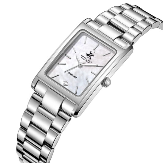 Женские кварцевые часы Beverly Hills Polo Club — это изысканный аксессуар, подчеркивающий индивидуальность и элегантность. Корпус размером 22,5×34,5 мм выполнен из стали 316L. Циферблат перламутрового цвета оформлен штрихами, стрелками и инкрустирован одним синтетическим бриллиантом. Циферблат защищён минеральным стекломМинеральное стеклоМинеральное стекло представляет собой искусственно выращенный минерал кварца. Такое стекло отличается особой устойчивостью к повреждениям и царапинам. Уступает по некоторым качествам сапфировому стеклу. с сапфировым покрытием. Часы оснащены стальным браслетом из стали 316L на застёжке «бабочка» с кнопкамиЗастёжка "бабочка"Такой вид застёжки дополняется предохранителями, помогающими избежать случайного раскрытия браслета. Обладают изящным исполнением. . Водонепроницаемость 30 м позволяет использовать часы в повседневных условиях. Идеальный выбор для тех, кто ценит американское качество и универсальный дизайн.