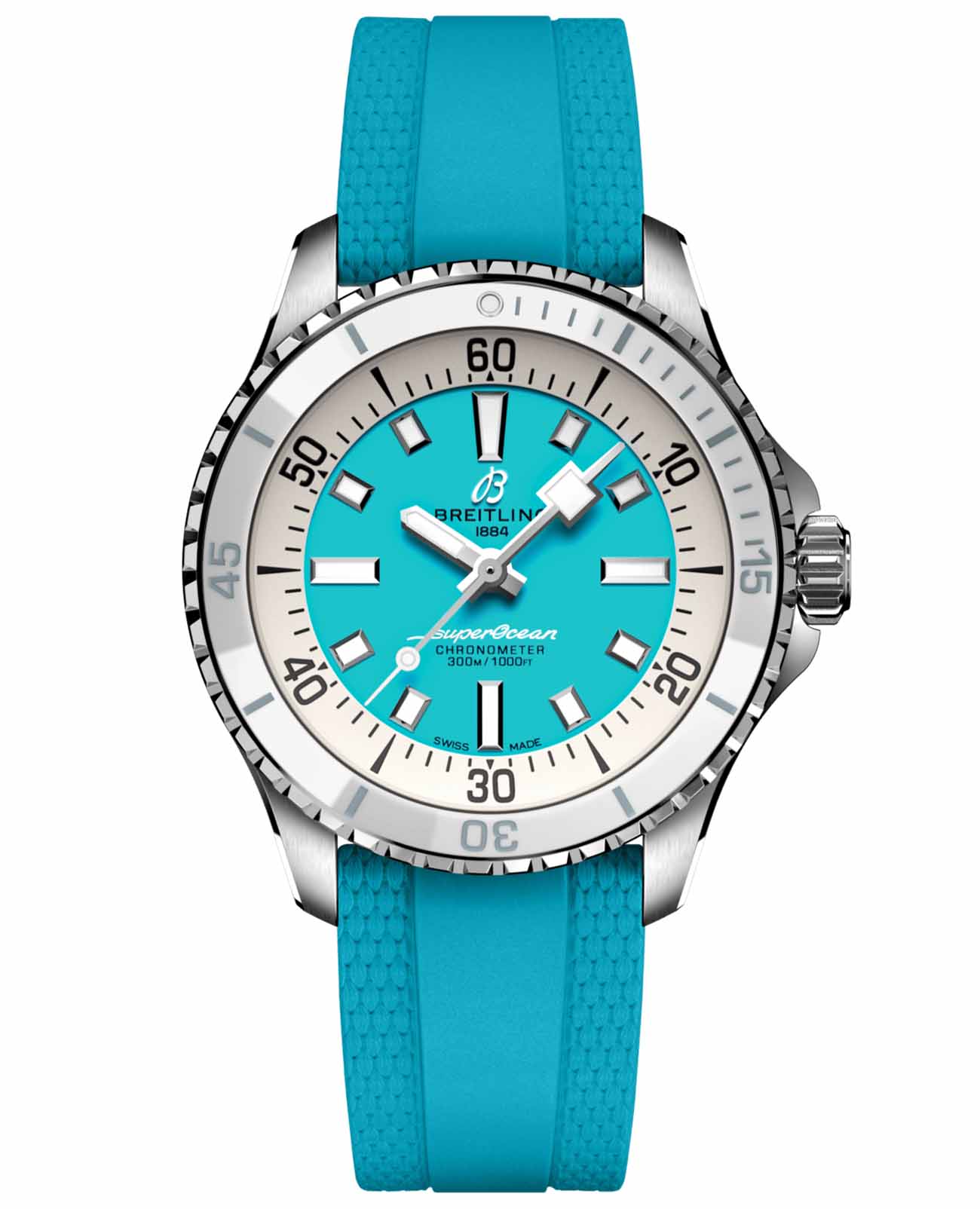 Унисекс водонепроницаемые швейцарские часы Breitling Superocean Automatic 36 A17377211C1S1, механический механизм (автоматический калибр) с высокой точностью. Сапфировое стеклоСапфировое стеклоПрочный и надёжный материал из кристалла сапфира синтетического происхождения, характеризующийся особой твёрдостью и устойчивостью к царапинам и повреждениям. устойчивое к появлению царапин, обладающее высокой прозрачностью. Класс водозащиты: 300 метров, позволит плавать, нырять и заниматься другими водными видами спорта. Корпус часов изготовлен из стали. Силиконовый ремешок с раскладной застёжкойРаскладная застёжкаТакой тип застёжки используется только на браслетах из металла. Она никогда не раскрывается полностью, происходит разделение на 2 и более частей. Раскладывающая застёжка снизит вероятность потери часов к минимуму.. Два варианта ремешка (резиновый и металлический браслет) имеют складывающуюся застежку, которая позволяет осуществлять микрорегулировку до 15 мм для удобства ношения поверх гидрокостюмов. Новый Superocean повторяет знаменитые дизайнерские коды Slow Motion, добавляя при этом современные элементы, такие как безель с керамической вставкой и яркие циферблаты. Стрелки и метки с люминесцентным покрытиемЛюминесцентное покрытиеПозволяет считывать показания времени в темноте. Производители наносят на стрелки, часовые индексы, безель или поверхность циферблата светонакопительный состав, дающий холодное свечение.. Широкие стрелки и индексы с люминесцентным покрытиемЛюминесцентное покрытиеПозволяет считывать показания времени в темноте. Производители наносят на стрелки, часовые индексы, безель или поверхность циферблата светонакопительный состав, дающий холодное свечение. обеспечивают легкую читаемость под водой. Вращающийся стальной безельБезельВнешний ободок, закрепляющий стекло. В спортивных часах так называется поворотное кольцо с делениями на циферблате, выполняет роль таймера – замеряет отрезки времени на шкале. Неподвижный безель – элемент декора. Однонаправленно вращающийся безель на дайверских часах позволяет фиксировать моменты погружения и выныривания на поверхность. с люминесцентным покрытиемЛюминесцентное покрытиеПозволяет считывать показания времени в темноте. Производители наносят на стрелки, часовые индексы, безель или поверхность циферблата светонакопительный состав, дающий холодное свечение. Superluminova из нержавеющей стали и керамики, защищенный от царапин, никогда не изнашивается и не выцветает. Лучше всего то, что это больше не просто часы для дайвинга — занимайтесь с ними серфингом, плавайте с ними, заходите с ними в пляжный бар, а затем надевайте их на ужин. Superocean идеально сочетает ностальгию по своему наследию со свежим внешним видом.