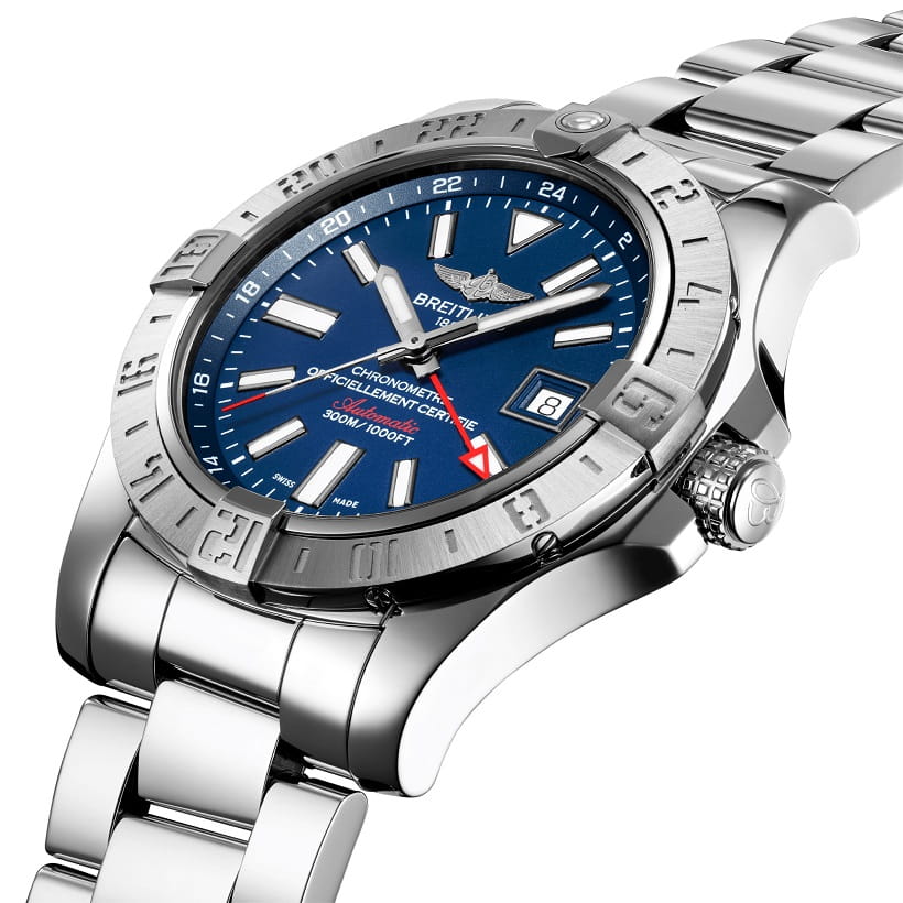 Модель Avenger II GMT отличается особой практичностью благодаря индикации в 24-часовом формате во втором часовом поясе и вращающемуся в оба направления безелю, который позволяет определять время в третьем часовом поясе. Надежная защита сертифицированного калибра с автоподзаводом обеспечивается за счет ультрапрочного стального корпуса, водонепроницаемость которого достигает 300 м (1000 футов), и продольного усиления конструкции часов.