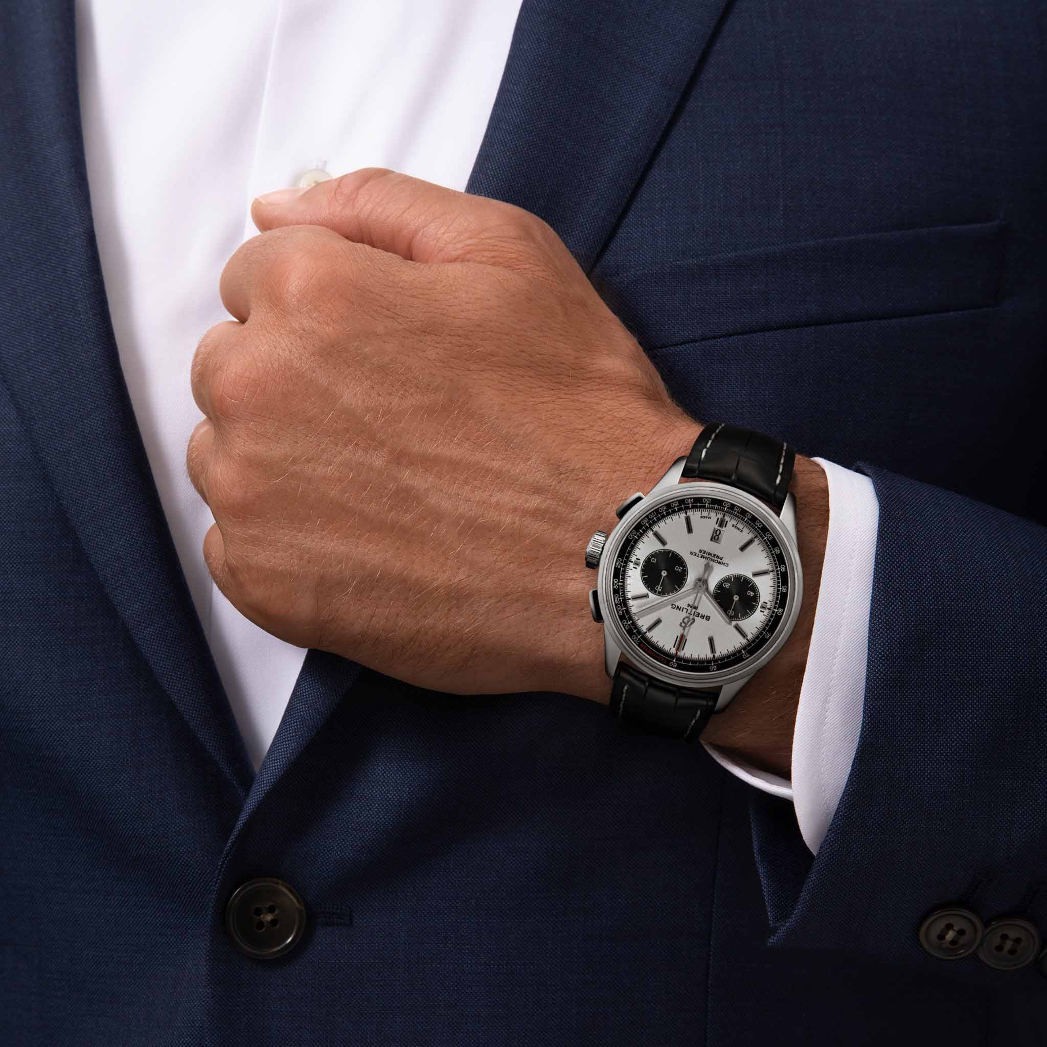 Часы Premier, разработанные Вилли Брайтлингом в 40-х годах прошлого века, стали первой моделью бренда, которая задумывалась в первую очередь как стильный аксессуар. Современная версия Premier, как и ее историческая предшественница, отличается элегантностью и изысканными деталями в стиле ретро, которые подчеркивают безупречный стиль своего владельца. Квадратные кнопки хронографаХронографФункция позволяет измерять отрезки времени с особой точностью: часы, минуты, секунды. Верным признаком хронографа является наличие на циферблате 3 дополнительных окошек-счётчиков., циферблат «панда», характерный для хронографов с компоновкой bi-compax, бороздки по бокам корпуса и прозрачная задняя крышка из сапфирового стеклаСапфировое стеклоПрочный и надёжный материал из кристалла сапфира синтетического происхождения, характеризующийся особой твёрдостью и устойчивостью к царапинам и повреждениям. – все эти детали создают оригинальный внешний вид модели.