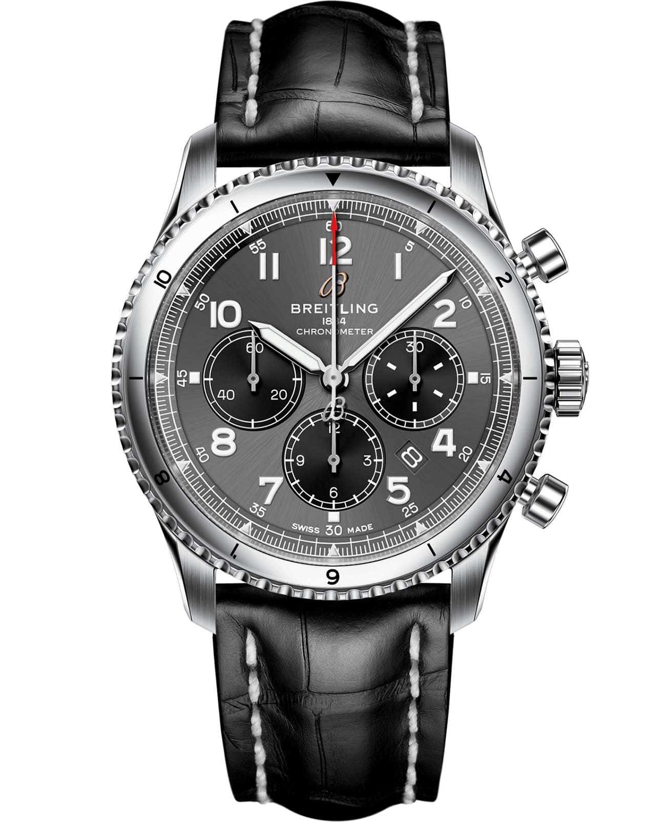 Модель Aviator 8 B01 Chronograph 43 оснащена уникальным мануфактурным калибром Breitling Manufacture Caliber 01. Часы диаметром 43 мм с автоматическим заводом обладают хронографом с храповым механизмом и вертикальной передачей, а также впечатляющим запасом хода более 70 часов.