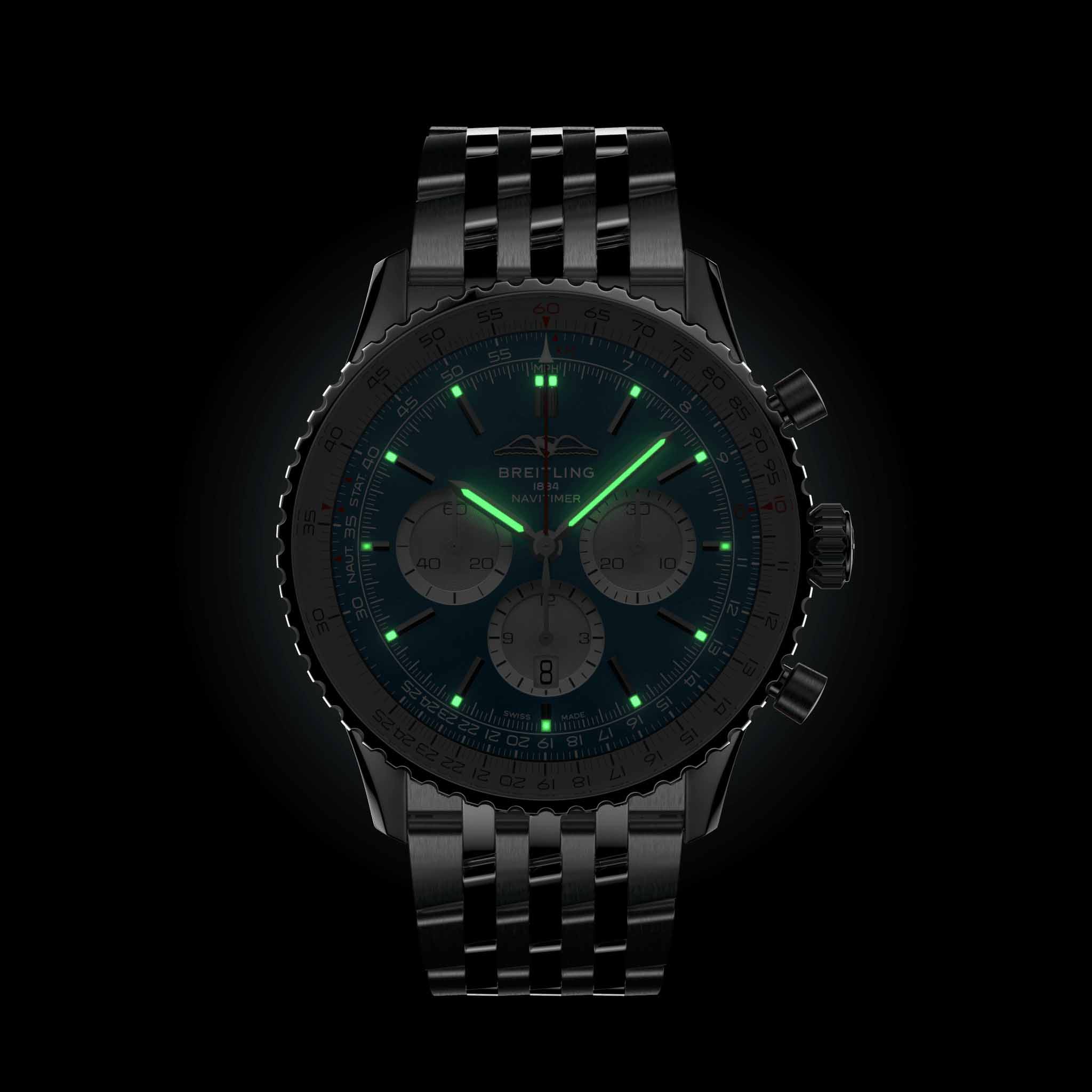 Мужские швейцарские часы-хронографХронографФункция позволяет измерять отрезки времени с особой точностью: часы, минуты, секунды. Верным признаком хронографа является наличие на циферблате 3 дополнительных окошек-счётчиков. с секундомеромСекундомерСекундоме́р — прибор, способный измерять интервалы времени с точностью до долей секунды. Breitling Navitimer B01 Chronograph 46 AB0137211C1A1, механический механизм (автоматический калибр) с высокой точностью. Сапфировое стеклоСапфировое стеклоПрочный и надёжный материал из кристалла сапфира синтетического происхождения, характеризующийся особой твёрдостью и устойчивостью к царапинам и повреждениям. с антибликовым покрытием устойчивое к появлению царапин, обладающее высокой прозрачностью. Класс водозащиты: 30 метров, позволит защитить корпус от случайных брызг или капель дождя. Корпус часов изготовлен из стали. Стальной браслет с застёжкой-бабочкой с кнопкамиЗастёжка "бабочка"Такой вид застёжки дополняется предохранителями, помогающими избежать случайного раскрытия браслета. Обладают изящным исполнением. . Шкала тахиметраТахиметрРазмеченная шкала, располагается на ободке или безеле часов. Тахиметр позволяет рассчитать скорость на определённом участке пути, расстояние измеряется в километрах или милях. на циферблате. Часы имеют сертификат COSCСертификат COSCОфициальный сертификат, подтверждающий то, что часы ходят с особо высокой точностью. Для получения документа часы подвергаются тестовым испытаниям, разработанным швейцарским институтом тестирования хронометров COSC. Допустимая норма для механических часов -4/+6 секунд в день, для кварцевых моделей +/- 0,07 секунд в день.. Окошко даты находится в положении 6 часов. Стрелки и метки с люминесцентным покрытиемЛюминесцентное покрытиеПозволяет считывать показания времени в темноте. Производители наносят на стрелки, часовые индексы, безель или поверхность циферблата светонакопительный состав, дающий холодное свечение..