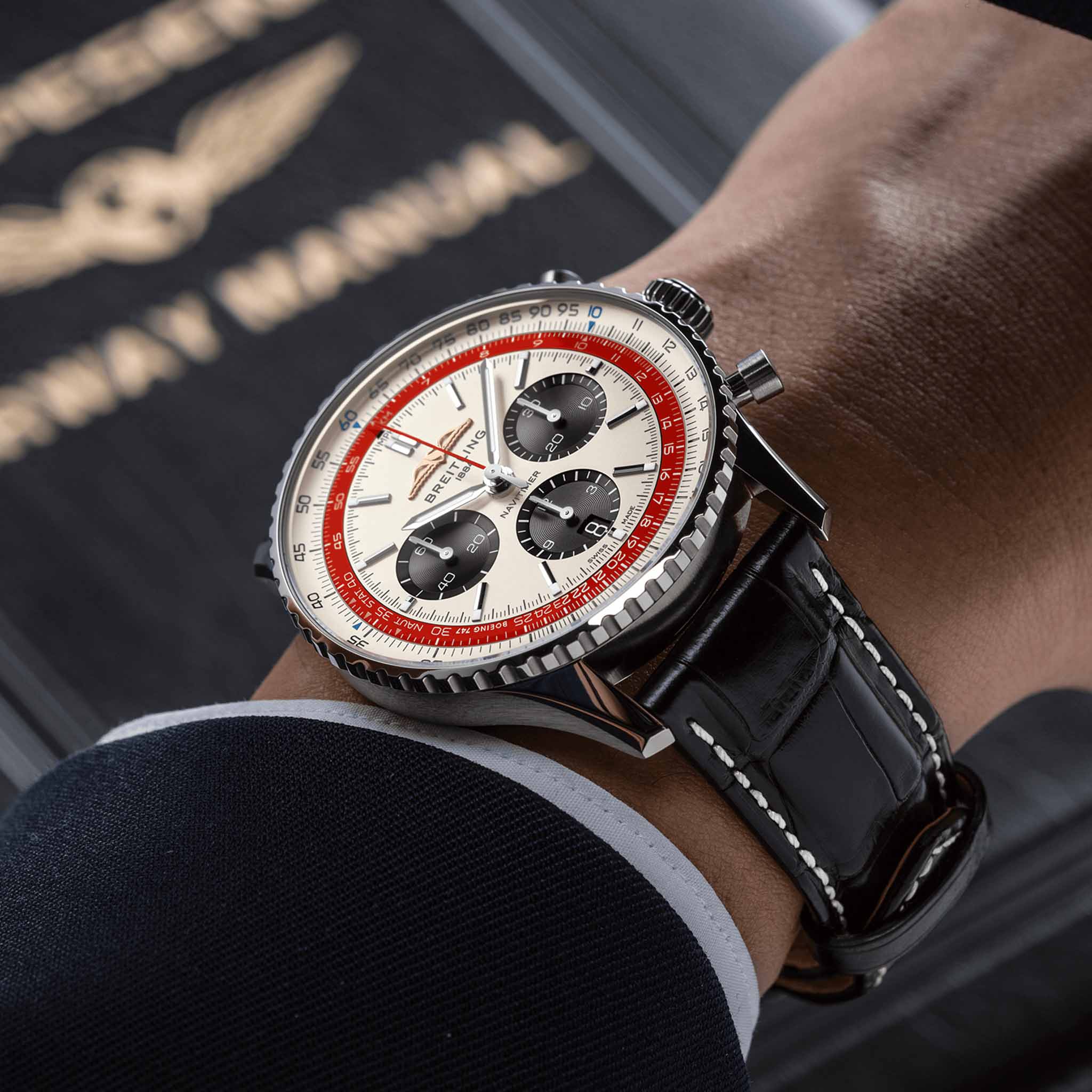 Швейцарские мужские механические часы Breitling Navitimer B01 Chronograph 43 Boeing 747 AB01383B1G1P1 с хронографом