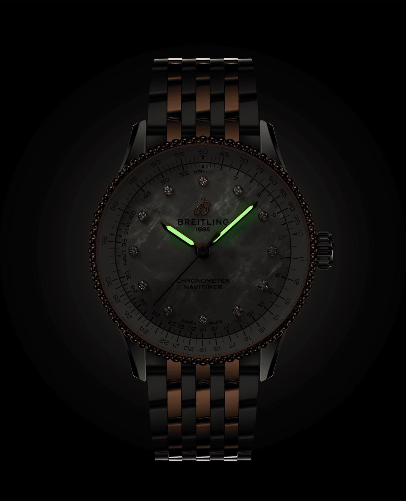 Швейцарские унисекс часы-хронометр Breitling Navitimer Automatic 36 U17327211A1U1, механический механизм (автоматический калибр) с высокой точностью. Сапфировое стеклоСапфировое стеклоПрочный и надёжный материал из кристалла сапфира синтетического происхождения, характеризующийся особой твёрдостью и устойчивостью к царапинам и повреждениям. устойчивое к появлению царапин, обладающее высокой прозрачностью. Класс водозащиты: 30 метров, позволит защитить корпус от случайных брызг или капель дождя. Корпус часов изготовлен из нержавеющей стали. Браслет из нержавеющей стали и красного 18-каратного золота18-каратное золотоОбозначение по каратной системе пробирования, оно показывает, сколько драгоценного металла содержится в изделии. 18 карат - в составе 75% чистого золота, соответствует 750 пробе.