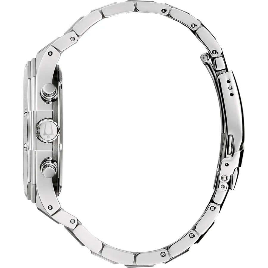 Мужские кварцевые часы-хронографХронографФункция позволяет измерять отрезки времени с особой точностью: часы, минуты, секунды. Верным признаком хронографа является наличие на циферблате 3 дополнительных окошек-счётчиков. Bulova Classic 96B410 – отражающий идеальное сочетание современного дизайна, надёжности и функциональности. Элегантный облик станет превосходным завершением образа, наделив его индивидуальным характером. Корпус из нержавеющей стали, диаметром 44 мм идеально сбалансирован и элегантен. Минеральное стеклоМинеральное стеклоМинеральное стекло представляет собой искусственно выращенный минерал кварца. Такое стекло отличается особой устойчивостью к повреждениям и царапинам. Уступает по некоторым качествам сапфировому стеклу. защищает циферблат от царапин и устойчивое к мелким механическим повреждениям. Шкала тахиметраТахиметрРазмеченная шкала, располагается на ободке или безеле часов. Тахиметр позволяет рассчитать скорость на определённом участке пути, расстояние измеряется в километрах или милях. на циферблате. Стальной браслет на раскладной застёжкеРаскладная застёжкаТакой тип застёжки используется только на браслетах из металла. Она никогда не раскрывается полностью, происходит разделение на 2 и более частей. Раскладывающая застёжка снизит вероятность потери часов к минимуму. обеспечивает комфортное ношение. Стрелки и метки с люминесцентным покрытиемЛюминесцентное покрытиеПозволяет считывать показания времени в темноте. Производители наносят на стрелки, часовые индексы, безель или поверхность циферблата светонакопительный состав, дающий холодное свечение. позволяющие легко определять время даже в темноте. Водозащита 100 метров, позволит плавать, нырять и заниматься другими водными видами спорта. Окошко даты находится в положении между 4 и 5 часов. Эта модель – отличный выбор для тех, кто ищет сочетание стиля, качества и функциональности. Часы станут не только полезным аксессуаром, но и выразительным элементом вашего имиджа.