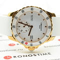 Стальной корпус с PVD-покрытиемPVDУльтратонкое покрытие наносится в технике вакуумного напыления, сочетает в себе нитрид титана особой прочности со слоем золота или оксида хрома. Несёт в себе декоративную или защитную функцию. дополнен керамическим безелемБезельВнешний ободок, закрепляющий стекло. В спортивных часах так называется поворотное кольцо с делениями на циферблате, выполняет роль таймера – замеряет отрезки времени на шкале. Неподвижный безель – элемент декора. Однонаправленно вращающийся безель на дайверских часах позволяет фиксировать моменты погружения и выныривания на поверхность., устойчивым к царапинам. Секундный счётчик вынесен в нижнюю часть циферблата. Каучуковый ремешок отличается мягкостью и прочностью. В основе работы – швейцарский кварцевый механизм ETA G15.211.