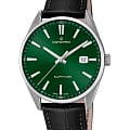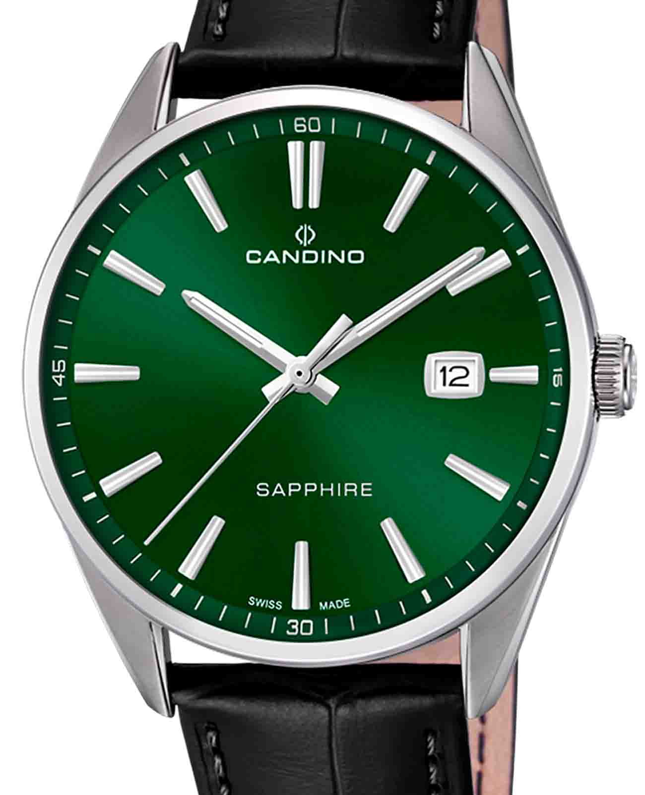 Мужские наручные часы Candino Couple C4622/B сочетают в себе классический дизайн и надежность швейцарского качества. Модель обладает круглым корпусом, изготовленным из нержавеющей стали марки 316L, что обеспечивает высокую устойчивость к коррозии и механическим повреждениям . Корпус оснащен  сапфировым стекломСапфировое стеклоПрочный и надёжный материал из кристалла сапфира синтетического происхождения, характеризующийся особой твёрдостью и устойчивостью к царапинам и повреждениям., которое гарантирует защиту от царапин и других внешних воздействий . Часы имеют кожаный ремешок черного цвета, обеспечивающий комфортное ношение в течение дня . Циферблат зеленого цвета дополнен окном даты, расположенном на позиции «3 часа», что добавляет удобства при повседневном использовании . Часы оснащены кварцевым механизмом, который известен своей точностью и минимальной потребностью в обслуживании. Погрешность хода составляет около 20 секунд в месяц, что гарантирует надежность показаний времени . Водонепроницаемость модели достигает 5 атмосфер (50 метров), что позволяет использовать часы в условиях легкого контакта с водой, например, во время мытья рук или дождя, но не рекомендуется для плавания или дайвинга . Модель Candino Classic C4622/A станет идеальным выбором для ценителей классического стиля и практичности в повседневной жизни.