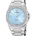 Женские наручные часы Candino Elegance C4753/4 с надёжным кварцевым механизмом. Корпус и браслет часов изготовлены из нержавеющей стали. Сапфировое стеклоСапфировое стеклоПрочный и надёжный материал из кристалла сапфира синтетического происхождения, характеризующийся особой твёрдостью и устойчивостью к царапинам и повреждениям. повышенной прозрачности, устойчивое к мелким механическим повреждениям. Стальной браслет на раскладной застёжкеРаскладная застёжкаТакой тип застёжки используется только на браслетах из металла. Она никогда не раскрывается полностью, происходит разделение на 2 и более частей. Раскладывающая застёжка снизит вероятность потери часов к минимуму.. Стрелки и метки с люминесцентным покрытиемЛюминесцентное покрытиеПозволяет считывать показания времени в темноте. Производители наносят на стрелки, часовые индексы, безель или поверхность циферблата светонакопительный состав, дающий холодное свечение.. БезельБезельВнешний ободок, закрепляющий стекло. В спортивных часах так называется поворотное кольцо с делениями на циферблате, выполняет роль таймера – замеряет отрезки времени на шкале. Неподвижный безель – элемент декора. Однонаправленно вращающийся безель на дайверских часах позволяет фиксировать моменты погружения и выныривания на поверхность. инкрустирован кристаллами. Класс водозащиты: 50 метров, позволит защитить корпус от случайных брызг или капель дождя.