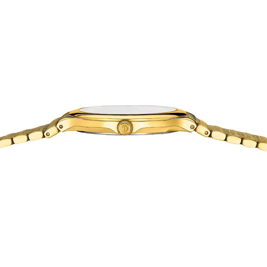 Женские кварцевые часы Candino из коллекции Series 1947 — это утончённый аксессуар, сочетающий минимализм и швейцарское качество. Корпус диаметром 33,5 мм и толщиной 6 мм выполнен из нержавеющей стали 316L с PVD-покрытиемPVDУльтратонкое покрытие наносится в технике вакуумного напыления, сочетает в себе нитрид титана особой прочности со слоем золота или оксида хрома. Несёт в себе декоративную или защитную функцию. жёлтого золота. Циферблат зелёного цвета оформлен двумя стрелками без индикации даты, что придаёт дизайну чистоту и элегантность. Циферблат защищён сапфировым стекломСапфировое стеклоПрочный и надёжный материал из кристалла сапфира синтетического происхождения, характеризующийся особой твёрдостью и устойчивостью к царапинам и повреждениям., устойчивым к царапинам. Метки циферблата выполнены из циркония. Механизм — кварцевый произведённый в Швейцарии. Часы оснащены стальным браслетом с PVD-покрытиемPVDУльтратонкое покрытие наносится в технике вакуумного напыления, сочетает в себе нитрид титана особой прочности со слоем золота или оксида хрома. Несёт в себе декоративную или защитную функцию. жёлтого золота на застёжке «бабочка» с кнопкамиЗастёжка "бабочка"Такой вид застёжки дополняется предохранителями, помогающими избежать случайного раскрытия браслета. Обладают изящным исполнением. . Водонепроницаемость 50 м позволяет использовать часы в повседневных условиях. Гарантия — 2 года. Идеальный выбор для тех, кто ценит лаконичный стиль, точность и надёжность.