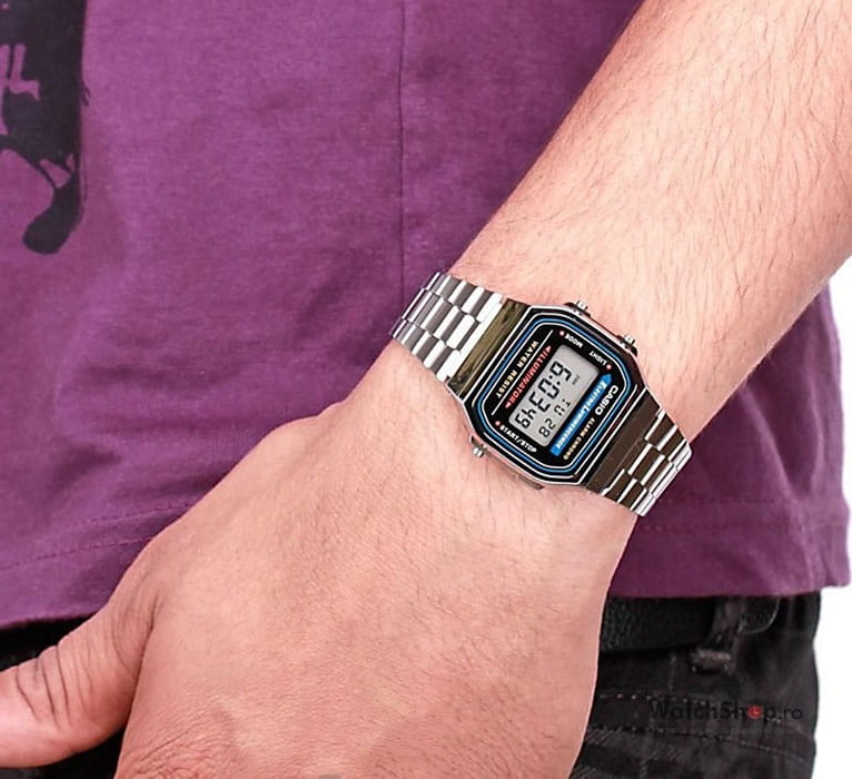 Наручные часы из прошлого вернулись в современной интерпретации. Надёжный корпус выполнен из полимерного пластика, стойко противостоящего ударам и повреждениям, для браслета с регулируемым креплением была выбрана нержавеющая сталь 316L. Электронная модель в серебристом цвете оснащена полезным функционалом: будильник, автоматический календарь, секундомер. Водостойкость 30 метров. Яркая подсветка экрана. Габариты: 36,3 x 38,6 x 9,6 мм.