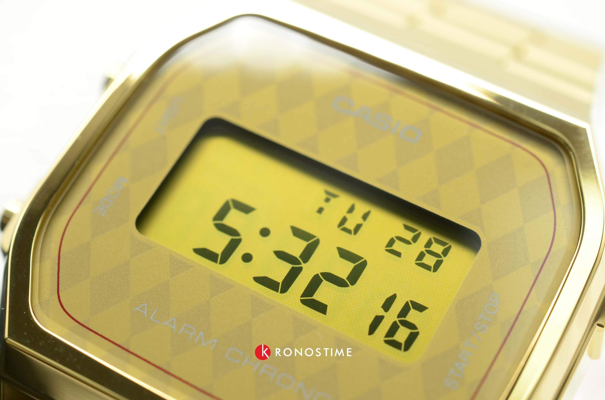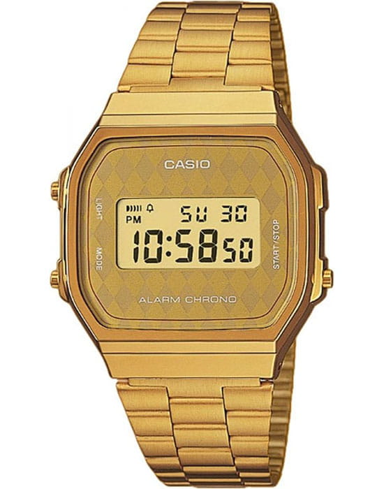 Брендовый аксессуар в золотом цвете имеет IP-покрытиеIP-покрытиеМетод ионного напыления. Демонстрирует повышенную устойчивость к истиранию, окислению и химическим веществам. Под воздействием высокого давления и температуры около 1500°C молекулы металла надёжно соединяются с частицами корпуса часов. стального браслета, защищающее от царапин и изнашивания, а также выполняющее декоративное предназначение. Оригинально смотрится циферблат с узором. Высокоточный кварцевый механизм. Яркая электролюминесцентная подсветка. Противоударный корпусУдаропрочный корпусМеханизм заключён в корпус, выполненный из современных материалов, устойчивых к ударам, механическим повреждениям и падению с высоты: инновационный пластик, карбон, нержавеющая сталь, титан. из надёжного пластика. Удобная застёжка расстёгивается одним касанием. Будильник, автоматический календарь. Габариты: 36,3 x 38,6 x 9,6 мм.