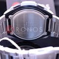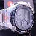 Японские спортивные наручные кварцевые мужские часы с пятью будильниками. ЖК циферблат серого цвета. Корпус - Пластиковый; Стекло - Минеральное; Водозащита - 100 м. (WR 100); Материал ремешка - Нержавеющая сталь; Цвет ремешка - Серебристый; Цвет циферблата - Lcd.