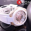 Несмотря на наличие крупных деталей, часы довольно компактно смотрятся на запястье, а мелкие лаконичные металлические акценты в виде стрелок и разметки циферблата в сочетании с нетипично тонким для BABY-G ремешком, делают их уместными даже для строгого дресс-кода.