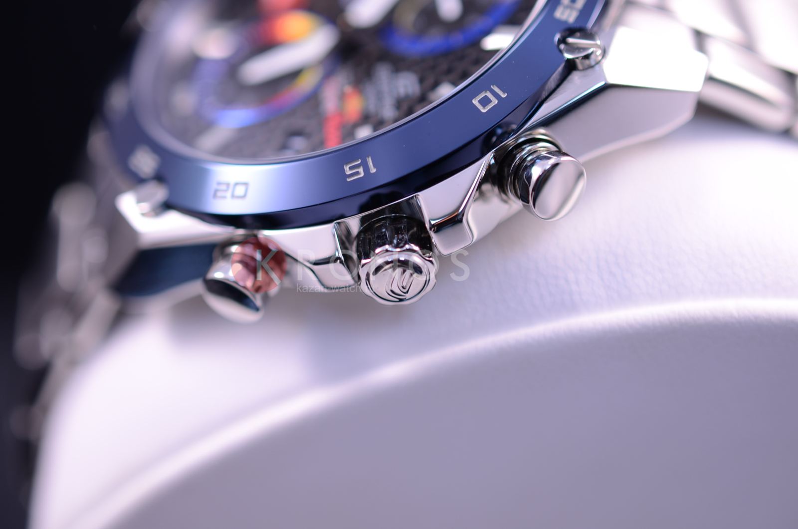 Аксессуар позволит вам всегда находиться в центре внимания. Он выдержан в узнаваемой стилистике концерна Red Bull, яркие оттенки на карбоновом циферблате заставляют вспомнить о драйве автогонок. Японский кварцевый калибр с абсолютной точностью хода. Аккумулятор рассчитан на 3 года службы. Закаленное минеральное стекло. БезельБезельВнешний ободок, закрепляющий стекло. В спортивных часах так называется поворотное кольцо с делениями на циферблате, выполняет роль таймера – замеряет отрезки времени на шкале. Неподвижный безель – элемент декора. Однонаправленно вращающийся безель на дайверских часах позволяет фиксировать моменты погружения и выныривания на поверхность. с синим защитным IP-покрытиемIP-покрытиеМетод ионного напыления. Демонстрирует повышенную устойчивость к истиранию, окислению и химическим веществам. Под воздействием высокого давления и температуры около 1500°C молекулы металла надёжно соединяются с частицами корпуса часов.. Ударопрочный корпусУдаропрочный корпусМеханизм заключён в корпус, выполненный из современных материалов, устойчивых к ударам, механическим повреждениям и падению с высоты: инновационный пластик, карбон, нержавеющая сталь, титан. и браслет из нержавеющей стали 316L. Люминесцентная подсветка NeobriteПодсветка NeobriteИспользование светонакопительных составов на основе сульфида цинка или алюмината стронция, яркий свет можно наблюдать на протяжении 6-10 часов после «зарядки» часов около источника света.. Закручивающаяся задняя крышка. Заводная головка с защитной системой. Водостойкость 10 бар. ХронографХронографФункция позволяет измерять отрезки времени с особой точностью: часы, минуты, секунды. Верным признаком хронографа является наличие на циферблате 3 дополнительных окошек-счётчиков., секундомер, отображение текущего числа. Габариты: 55,5 x 46,7 x 10,6 мм.