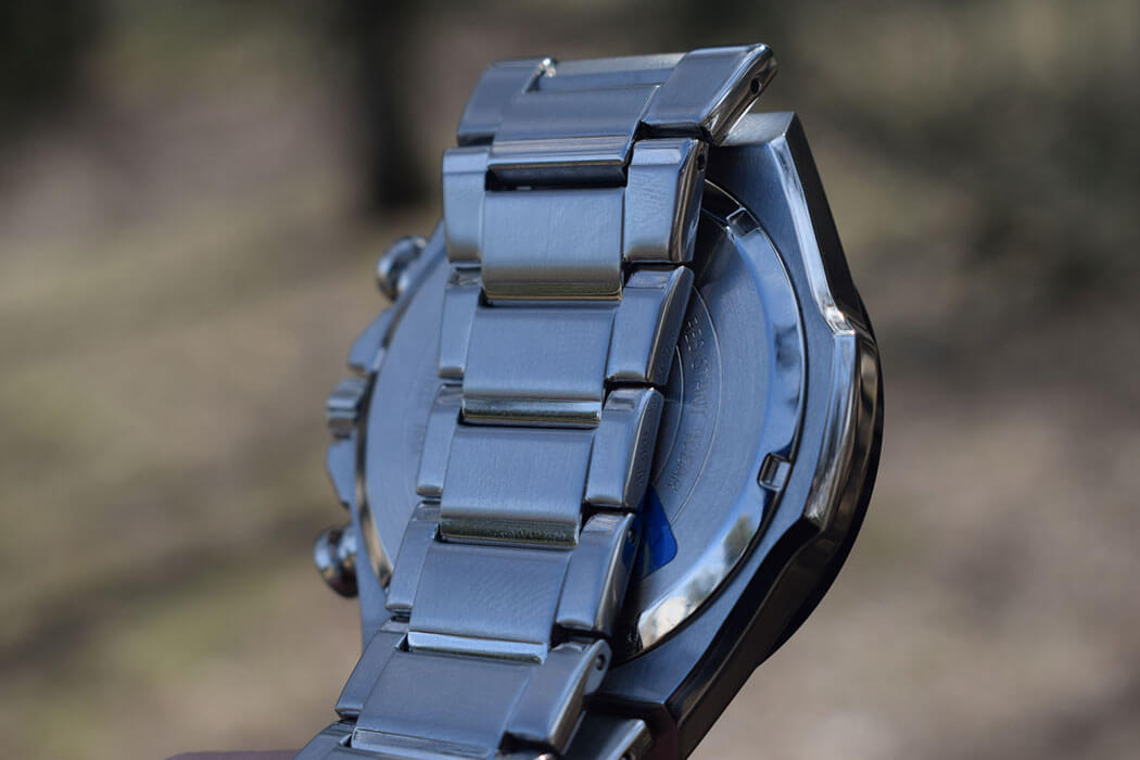 Дерзкий автомобильный дизайн, обтекаемые формы, строгие линии никого не оставят равнодушным. Эксклюзивной деталью стал циферблат с шахматным узором, поверхность которого выполнена из карбона. Модель способна получать энергию от солнечного света, она основана на технологии . Следить за состоянием заряда аккумулятора можно благодаря наличию специального индикатора. Противоударный корпусУдаропрочный корпусМеханизм заключён в корпус, выполненный из современных материалов, устойчивых к ударам, механическим повреждениям и падению с высоты: инновационный пластик, карбон, нержавеющая сталь, титан. и браслет сделаны из стали 316L, долговечный материал устойчив к коррозии. Точность хода кварцевого японского механизма составляет +/- 20 секунд в месяц. БезельБезельВнешний ободок, закрепляющий стекло. В спортивных часах так называется поворотное кольцо с делениями на циферблате, выполняет роль таймера – замеряет отрезки времени на шкале. Неподвижный безель – элемент декора. Однонаправленно вращающийся безель на дайверских часах позволяет фиксировать моменты погружения и выныривания на поверхность. с синим IP-покрытиемIP-покрытиеМетод ионного напыления. Демонстрирует повышенную устойчивость к истиранию, окислению и химическим веществам. Под воздействием высокого давления и температуры около 1500°C молекулы металла надёжно соединяются с частицами корпуса часов.. Сапфировое стекло. Закручивающаяся задняя крышка. Подсветка NeobriteПодсветка NeobriteИспользование светонакопительных составов на основе сульфида цинка или алюмината стронция, яркий свет можно наблюдать на протяжении 6-10 часов после «зарядки» часов около источника света.. Водонепроницаемость 10 бар. Секундомер, календарь. Габариты: 50 x 47,5 x 12,7 мм.