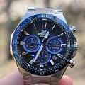 Японские мужские часы из коллекции Edifice - ваше стильное дополнение к любому образу, стальной хронографХронографФункция позволяет измерять отрезки времени с особой точностью: часы, минуты, секунды. Верным признаком хронографа является наличие на циферблате 3 дополнительных окошек-счётчиков. будет уместно смотреться на любом мероприятии.