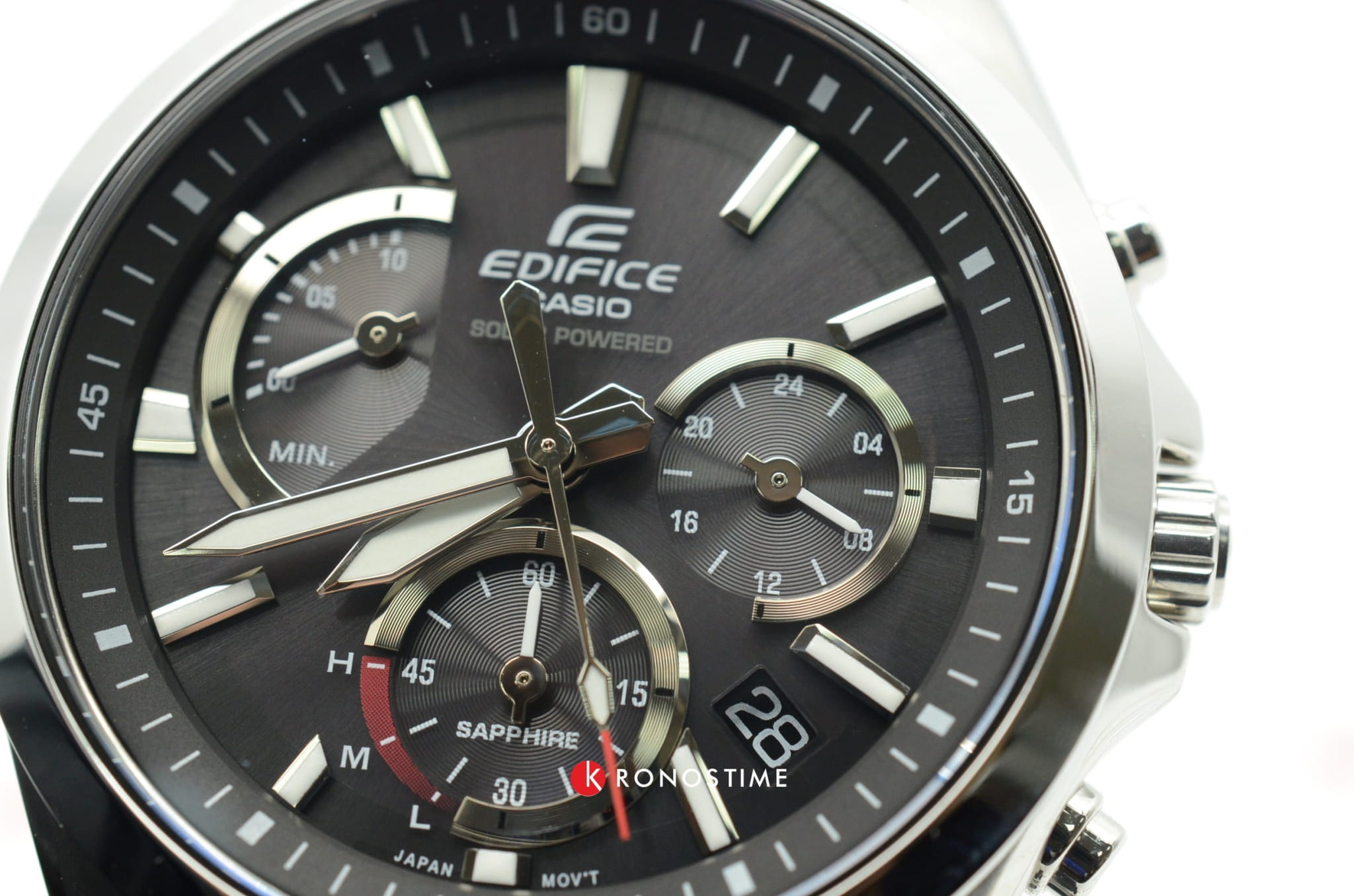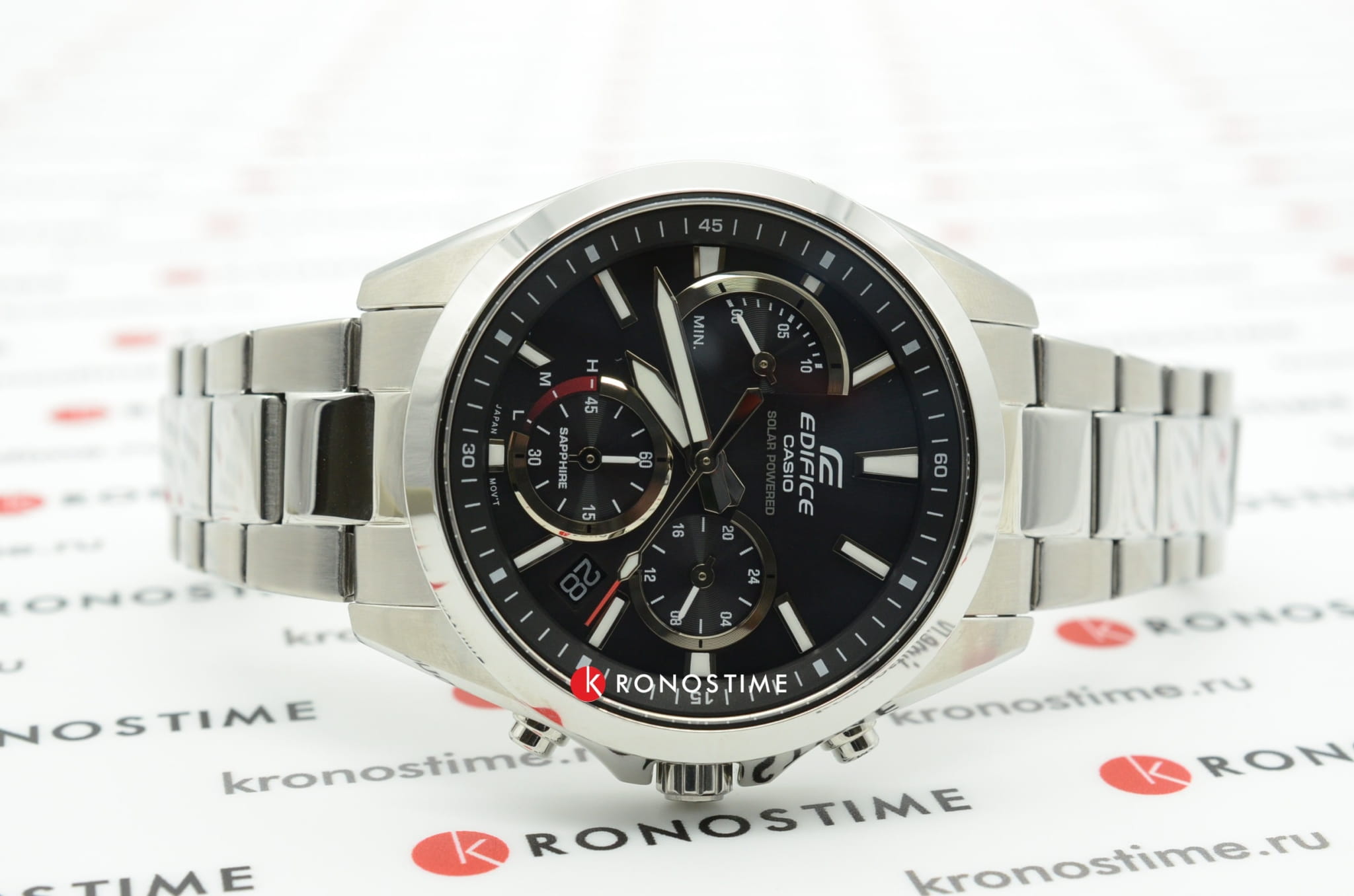 Чёрный циферблат с оригинальным размещением счётчиков имеет красные акценты, такой спортивный дизайн будет актуален в любой ситуации. Это наручные часы на солнечной батарее, основанные на технологии . Они дополнены браслетом из нержавеющей стали 316L с предохранительной застёжкой, обеспечивающей надёжную фиксацию на запястье. Кварцевый механизм с точностью хода -/+15 секунд в месяц. Сапфировое стекло. Люминесцентная подсветкаЛюминесцентное покрытиеПозволяет считывать показания времени в темноте. Производители наносят на стрелки, часовые индексы, безель или поверхность циферблата светонакопительный состав, дающий холодное свечение. стрелок. Апертура даты, функция хронографаХронографФункция позволяет измерять отрезки времени с особой точностью: часы, минуты, секунды. Верным признаком хронографа является наличие на циферблате 3 дополнительных окошек-счётчиков.. Габариты: 49,5 x 44,2 x 11,6 мм.