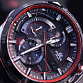 Стильный спортивный хронографХронографФункция позволяет измерять отрезки времени с особой точностью: часы, минуты, секунды. Верным признаком хронографа является наличие на циферблате 3 дополнительных окошек-счётчиков., выдержанный в драйвовой автомобильной тематике, станет ключевой деталью вашего образа. Красные элементы привлекательно смотрятся на чёрном фоне. Наручные часы отличаются ударопрочным корпусомУдаропрочный корпусМеханизм заключён в корпус, выполненный из современных материалов, устойчивых к ударам, механическим повреждениям и падению с высоты: инновационный пластик, карбон, нержавеющая сталь, титан. из антикоррозионной стали 316L. Точность хода японского кварцевого калибра составляет +/- 20 секунд в месяц. Технология питания от солнечного света . Индикатор уровня зарядки аккумулятора. Закручивающаяся задняя крышка. Подсветка NeobriteПодсветка NeobriteИспользование светонакопительных составов на основе сульфида цинка или алюмината стронция, яркий свет можно наблюдать на протяжении 6-10 часов после «зарядки» часов около источника света.. БезельБезельВнешний ободок, закрепляющий стекло. В спортивных часах так называется поворотное кольцо с делениями на циферблате, выполняет роль таймера – замеряет отрезки времени на шкале. Неподвижный безель – элемент декора. Однонаправленно вращающийся безель на дайверских часах позволяет фиксировать моменты погружения и выныривания на поверхность. с IP-покрытиемIP-покрытиеМетод ионного напыления. Демонстрирует повышенную устойчивость к истиранию, окислению и химическим веществам. Под воздействием высокого давления и температуры около 1500°C молекулы металла надёжно соединяются с частицами корпуса часов.. Ремешок из натуральной кожи. Минеральное стекло. Секундомер, отображение числа. Габариты: 52,9 x 49 x 13,2 мм.