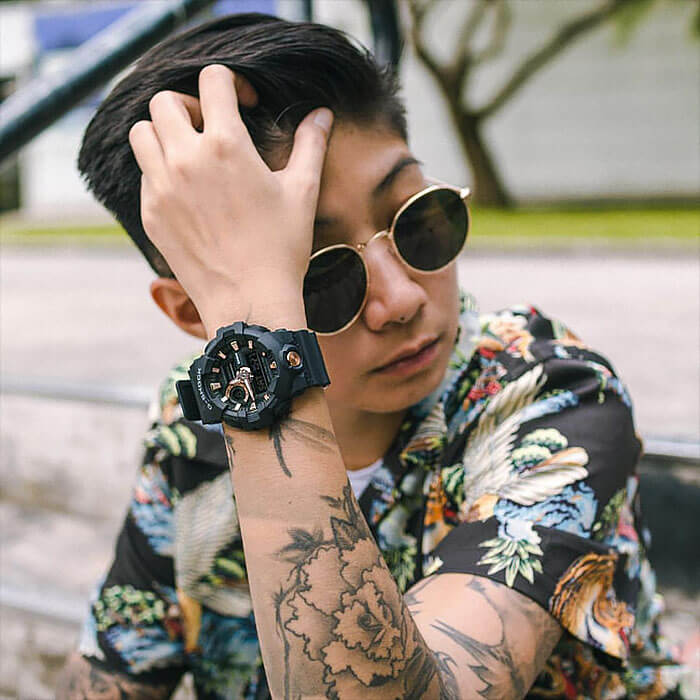 Стильный аксессуар чёрного цвета имеет привлекательные акценты в цвете розового золота, что смягчает его брутальный вид. Часы с крупными стрелками и метками обеспечивают идеальную читаемость показателей времени, кнопка подсветки для удобства вынесена в нижнюю часть ударопрочного корпусаУдаропрочный корпусМеханизм заключён в корпус, выполненный из современных материалов, устойчивых к ударам, механическим повреждениям и падению с высоты: инновационный пластик, карбон, нержавеющая сталь, титан.. Он, как и ремешок, выполнен из полимерного материала, выдерживающим удары и падения. Японский кварцевый механизм получает питание от батарейки, отличающейся повышенным сроком службы до 5 лет. Закаленное минеральное стекло. Яркая светодиодная подсветкаСветодиодная подсветкаСветодиодная или LED-подсветка обеспечивает появление яркого холодного свечения за счёт LED-элементов - маленьких лампочек. Они потребляют минимальное количество энергии, чаще всего можно встретить 1 светодиод, в нижней части циферблата.. Водозащита 200 метров. Функция перемещения стрелок для быстрого доступа к данным малых счётчиков. Таймер обратного отсчёта, UTCUTCВсемирное кординационное время, не имеющее привязки к географическому положению Гринвича, основывается на атомном отсчёте времени. Регулировка времени осуществляется более точно, чем устаревшее GMT.