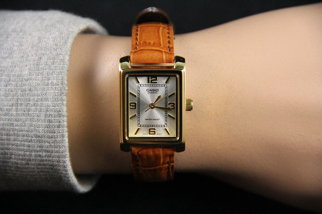 Японские женские часы Casio Collection LTP-1234PGL-7A станут незаменимым и практичным аксессуаром на все случаи жизни. Часы, сделанные в стиле casual, прекрасно подойдут для деловой встречи или прогулки. Удобный ремень, выполненный из натурально кожи, призван прослужить обладателю аксессуара своей долговечностью. Прямоугольный корпус часов сделан из гипоаллергенной латуни с IP-покрытиемIP-покрытиеМетод ионного напыления. Демонстрирует повышенную устойчивость к истиранию, окислению и химическим веществам. Под воздействием высокого давления и температуры около 1500°C молекулы металла надёжно соединяются с частицами корпуса часов.. Его золотая, гладкая поверхность плавно отражает падающий цвет. Привлекательный дизайн временных отметок сочетает в себе арабские цифры и штрихи. Серебристый циферблат надежно защищен минеральным стекломМинеральное стеклоМинеральное стекло представляет собой искусственно выращенный минерал кварца. Такое стекло отличается особой устойчивостью к повреждениям и царапинам. Уступает по некоторым качествам сапфировому стеклу., устойчивым к царапинам. Элегантная модель сочетает в себе прочность и удобство. Кварцевый механизм часов работает от батарейки, срок службы которой составляет 3 года. Кожаный ремешок на стандартной застежке.