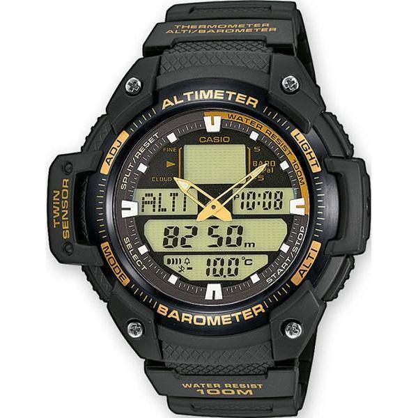 Спортивные японские мужские часы. Оснащены датчиком температуры, альтиметром, барометром и удобной электролюминесцентной подсветкой, освещающей весь циферблат. Корпус - Пластиковый; Стекло - Пластик; Водозащита - 100 м. (WR 100); Материал ремешка - Каучуковый; Цвет ремешка - Черный; Цвет циферблата - Lcd.