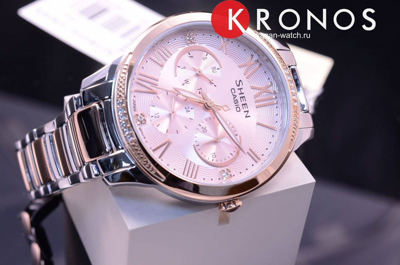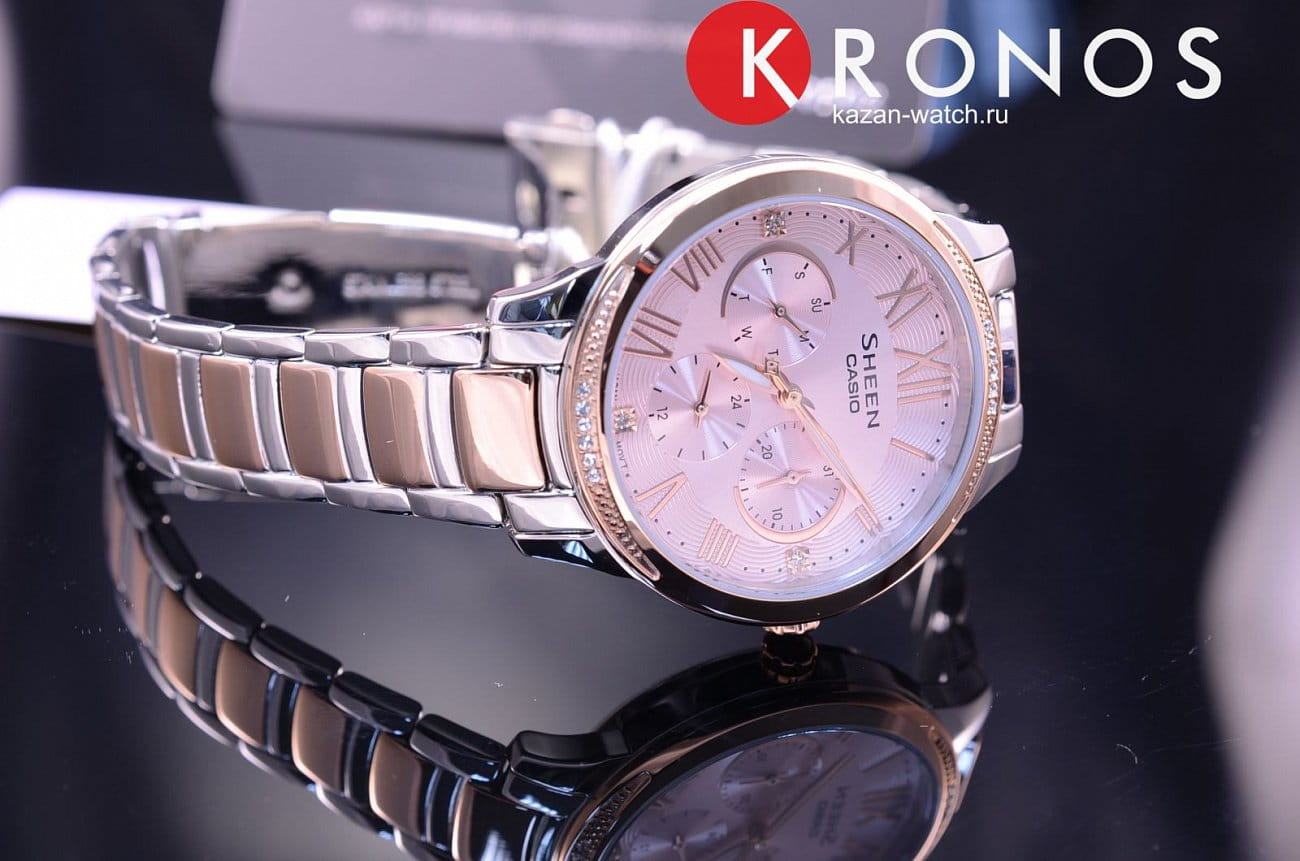 Напоминаем, что коллекция Casio Sheen - это линейка ультра-стильных женских фешн-часов в стальном корпусе, способных украсить собой самое изысканное и утонченное женское запястье. Особенностью коллекции, сделавшей ее популярной во всем мире, является использование знаменитых кристаллов Swarovski® в отделке циферблата каждой модели Sheen.