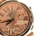Утончённая модель привлекает лёгким оттенком винтажа благодаря изящным римским цифрам. Наручные часы позволят создать образ романтичной натуры, станут идеальным дополнением к повседневному образу. Розовый циферблат имеет миниатюрные счётчики для отображения времени в 12/24-ом формате, индикации числа и дня недели. В качестве украшения используются стразы Swarovski. Ремешок из натуральной кожи. Ударопрочный корпусУдаропрочный корпусМеханизм заключён в корпус, выполненный из современных материалов, устойчивых к ударам, механическим повреждениям и падению с высоты: инновационный пластик, карбон, нержавеющая сталь, титан.. Водонепроницаемость 5 бар. Минеральное стекло. Габариты: 41,3 x 34 x 9,2 мм.