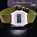 Аккуратный прямоугольный циферблат подсвечивается сбоку микроподсветкой. Секундомер измерят прошедшее время с точностью в 1/100 секунды. Легкий ремешок из нейлона будет красиво обрамлять запястье. Цифровой способ отображения времени. Долговечная батарейка служит 10 лет.
