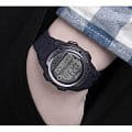 Кварцевые мужские часы. Оснащены: секундомером, отображением времени в двух часовых поясах, таймером, календарем, будильником, подсветкой. Корпус - Пластиковый; Стекло - Пластик; Водозащита - 100 м. (WR 100); Материал ремешка - Пластиковый; Цвет ремешка - Синий; Цвет циферблата - Lcd.