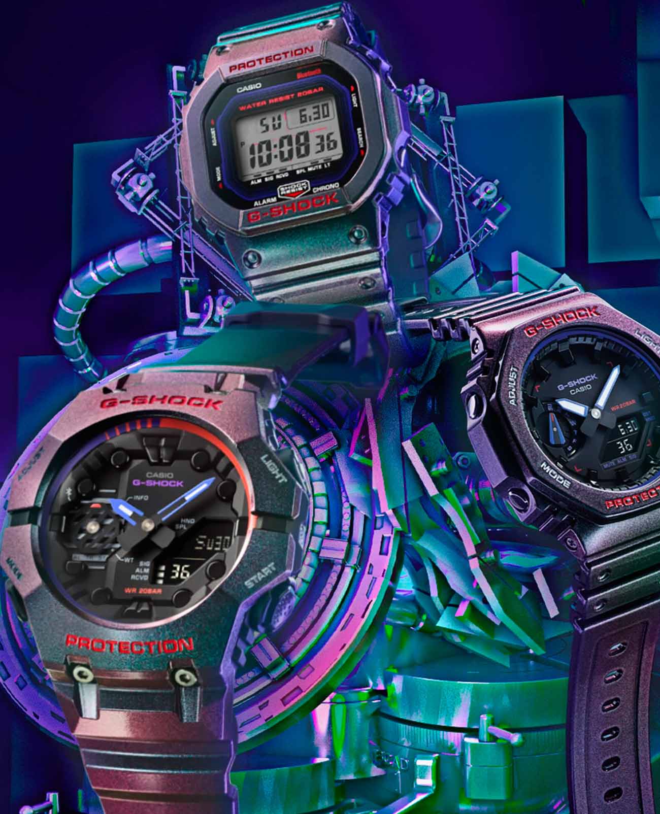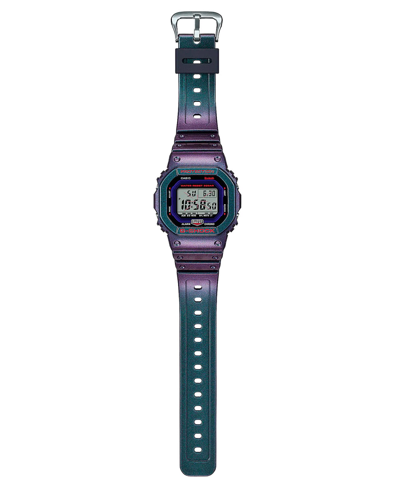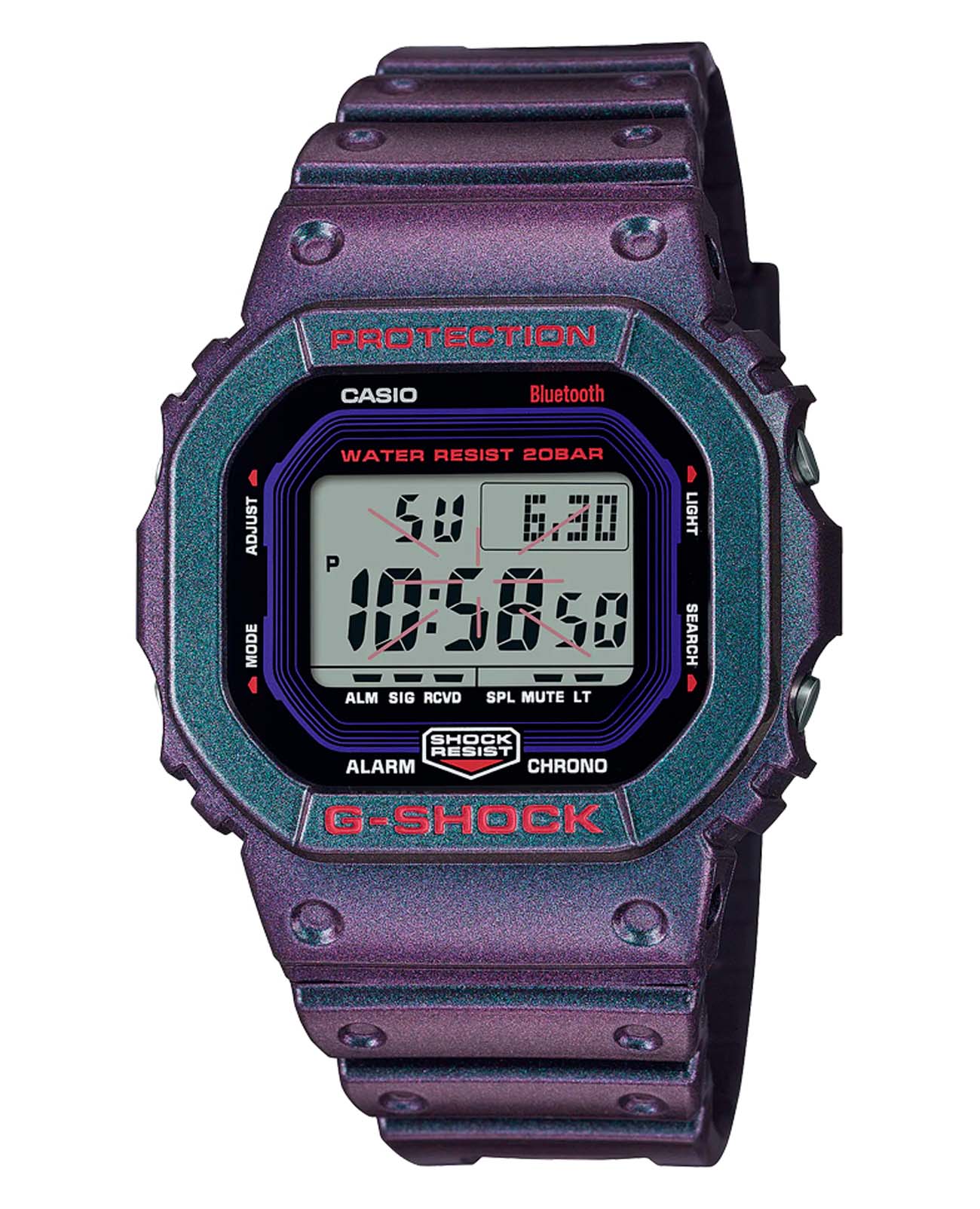 Японские мужские часы Casio G-Shock DW-B5600AH-6ER. Для тех, кто ставит перед собой более высокие цели в виртуальном мире — и в реальной жизни! Представляем G-SHOCK, вдохновленный решимостью, необходимой для достижения высочайших уровней компьютерных игр и выживания. Геймеры знают, что нужно для достижения высоких результатов в экшенах и стрелялках. Эти часы воссоздают захватывающий, постоянно меняющийся игровой мир с помощью поляризованной краски фиолетового и зеленого цветов, которая меняет цвет в зависимости от угла обзора. Такие детали, как оптический прицел для наведения прицела на цель, воплощены в оранжевых акцентах и графике на жидкокристаллическом экране, создавая игривый дизайн, который плавно перемещается между реальным и виртуальным мирами. Carbon Core GuardCarbon Core Guard Новейшая структура корпуса, разработанная Casio. Полиуретановая пластина дополнительно усилена карбоновыми вставками, что придаёт специальную защиту от механических повреждений. Карбон отличается лёгкостью и прочностью.. Минеральное стеклоМинеральное стеклоМинеральное стекло представляет собой искусственно выращенный минерал кварца. Такое стекло отличается особой устойчивостью к повреждениям и царапинам. Уступает по некоторым качествам сапфировому стеклу. устойчивое к появлению царапин, обладающее высокой прозрачностью. Светодиодная подсветкаСветодиодная подсветкаСветодиодная или LED-подсветка обеспечивает появление яркого холодного свечения за счёт LED-элементов - маленьких лампочек. Они потребляют минимальное количество энергии, чаще всего можно встретить 1 светодиод, в нижней части циферблата., настраиваемое послесвечение 1,5 или 3сек. Мировое время Мировое время Полезное часовое усложнение, отображающее время в основных городах и известных областях по всему миру, оно связано с часовыми поясами, удобно для путешественников и бизнесменов. 38 часовой пояс (38 городов + всемирное координированное время UTCUTCВсемирное кординационное время, не имеющее привязки к географическому положению Гринвича, основывается на атомном отсчёте времени. Регулировка времени осуществляется более точно, чем устаревшее GMT.