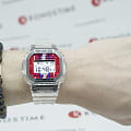 Брендовый джишок наценен на ценителей олдскульного квадратного корпуса, прототипом для которого стали первые модели Casio. . Наручные часы в прозрачном исполнении отображают время в цифровом формате, инверсионный дисплей имеет яркое обрамление. Противоударный корпусУдаропрочный корпусМеханизм заключён в корпус, выполненный из современных материалов, устойчивых к ударам, механическим повреждениям и падению с высоты: инновационный пластик, карбон, нержавеющая сталь, титан. с углеродными волокнами надёжно защищает японский кварцевый механизм от повреждений, последствий падения. Питание идёт от батарейки, рассчитанной на 2 года службы. Закаленное минеральное стекло. Комфортный полимерный ремешок. Электролюминесцентная подсветкаЭлектролюминесцентная подсветкаЭлектролюминесцентная панель устанавливается под ЖК-экраном часов, при нажатии кнопки электричество преобразуется в свет за счёт подачи напряжения на атомы фосфора, такой тип подсветки позволяет освещать весь циферблат.. Водостойкость 20 бар. Секундомер, автокалендарь, мировое времяМировое время Полезное часовое усложнение, отображающее время в основных городах и известных областях по всему миру, оно связано с часовыми поясами, удобно для путешественников и бизнесменов. , многофункциональный будильник, хронографХронографФункция позволяет измерять отрезки времени с особой точностью: часы, минуты, секунды. Верным признаком хронографа является наличие на циферблате 3 дополнительных окошек-счётчиков., таймер. Габариты:48,9мм x 43,8мм x 13,7мм