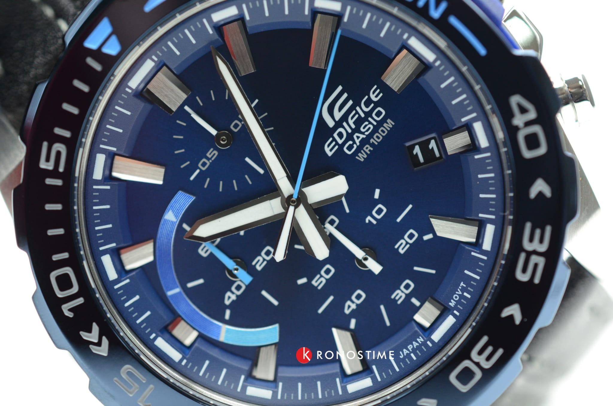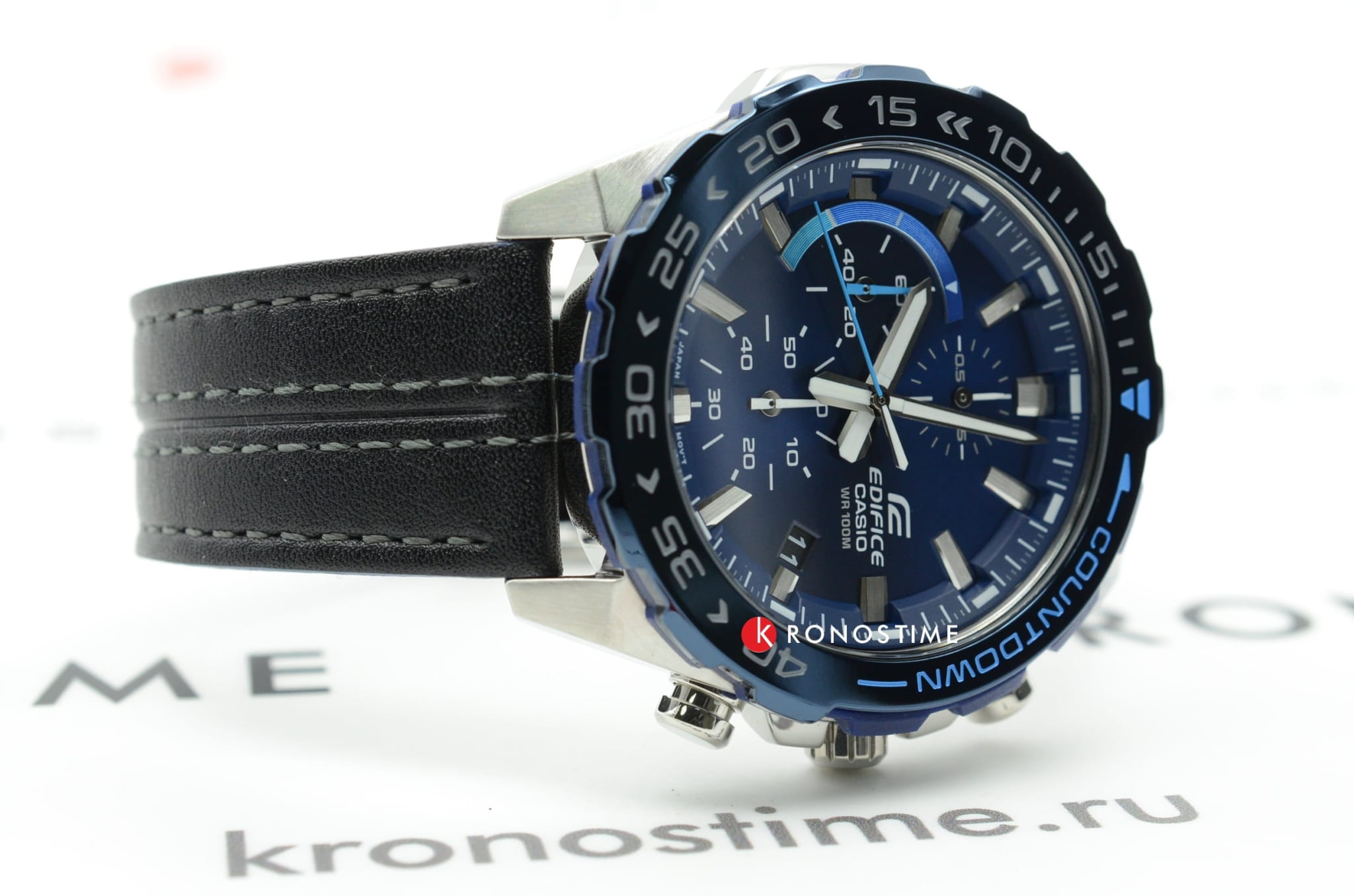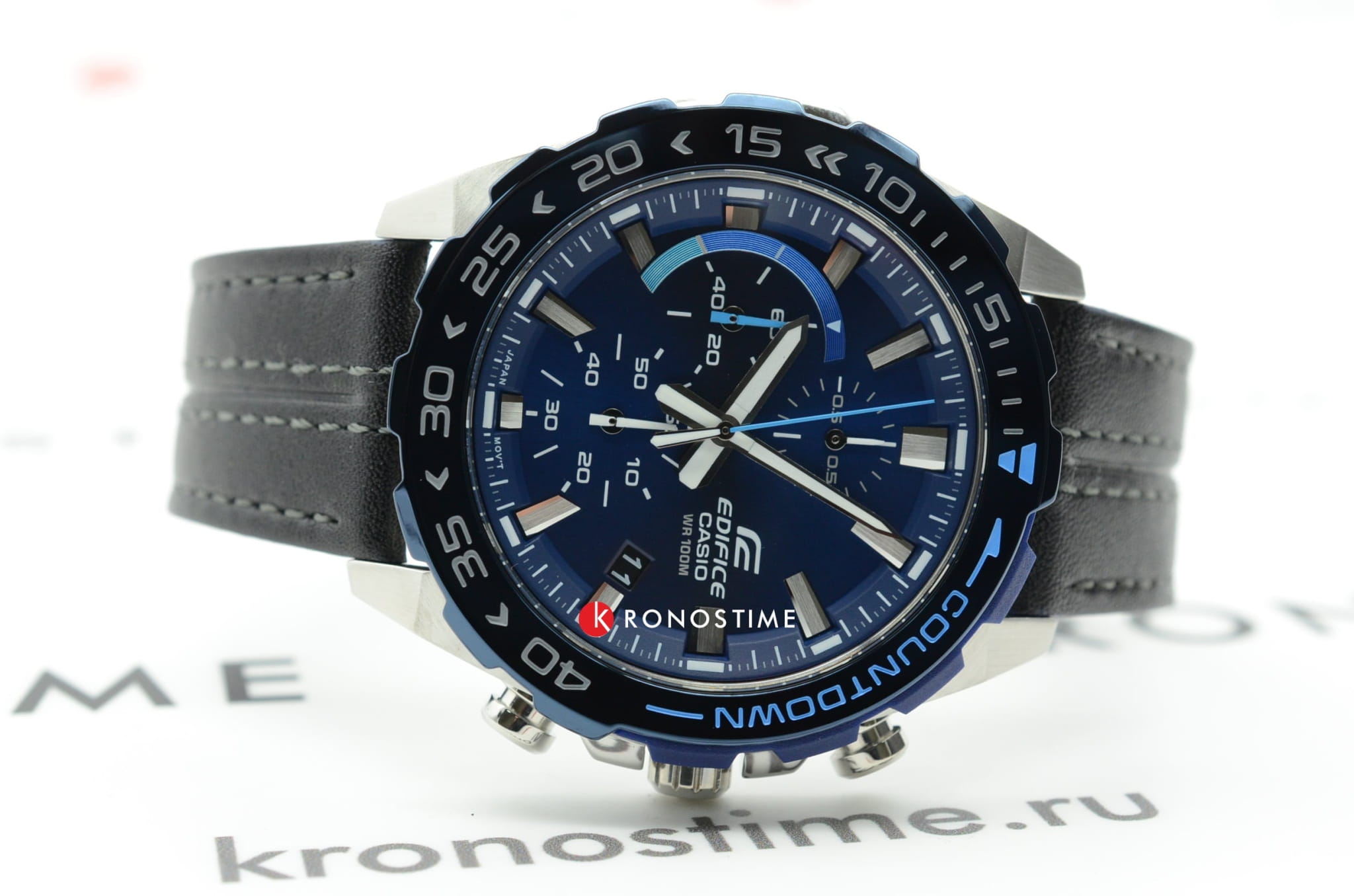 Модель отличается динамичным дизайном с уклоном в автомобильную стилистику, поклонники спортивного стиля по достоинству оценят аксессуар. Односторонне вращающийся безельБезельВнешний ободок, закрепляющий стекло. В спортивных часах так называется поворотное кольцо с делениями на циферблате, выполняет роль таймера – замеряет отрезки времени на шкале. Неподвижный безель – элемент декора. Однонаправленно вращающийся безель на дайверских часах позволяет фиксировать моменты погружения и выныривания на поверхность. имеет цветное IP-покрытиеIP-покрытиеМетод ионного напыления. Демонстрирует повышенную устойчивость к истиранию, окислению и химическим веществам. Под воздействием высокого давления и температуры около 1500°C молекулы металла надёжно соединяются с частицами корпуса часов., дополнительно защищающее от царапин. Оригинально смотрится чёрный ремешок из натуральной кожи с синими акцентами. Японский кварцевый механизм с точностью хода +/- 20 секунд в месяц. Заводная головка с защитой. Закручивающаяся задняя крышка. Водонепроницаемость 100 метров. Минеральное стекло, устойчивое к царапинам. Подсветка NeobriteПодсветка NeobriteИспользование светонакопительных составов на основе сульфида цинка или алюмината стронция, яркий свет можно наблюдать на протяжении 6-10 часов после «зарядки» часов около источника света.. Секундомер, индикация числа. Габариты: 49,3 x 43,2 x 11,7 мм.