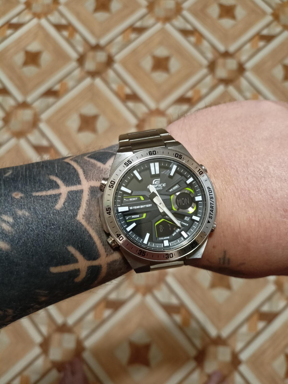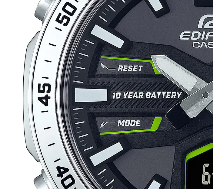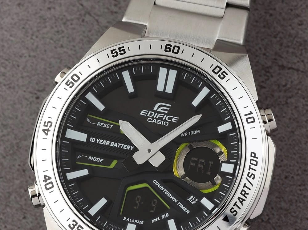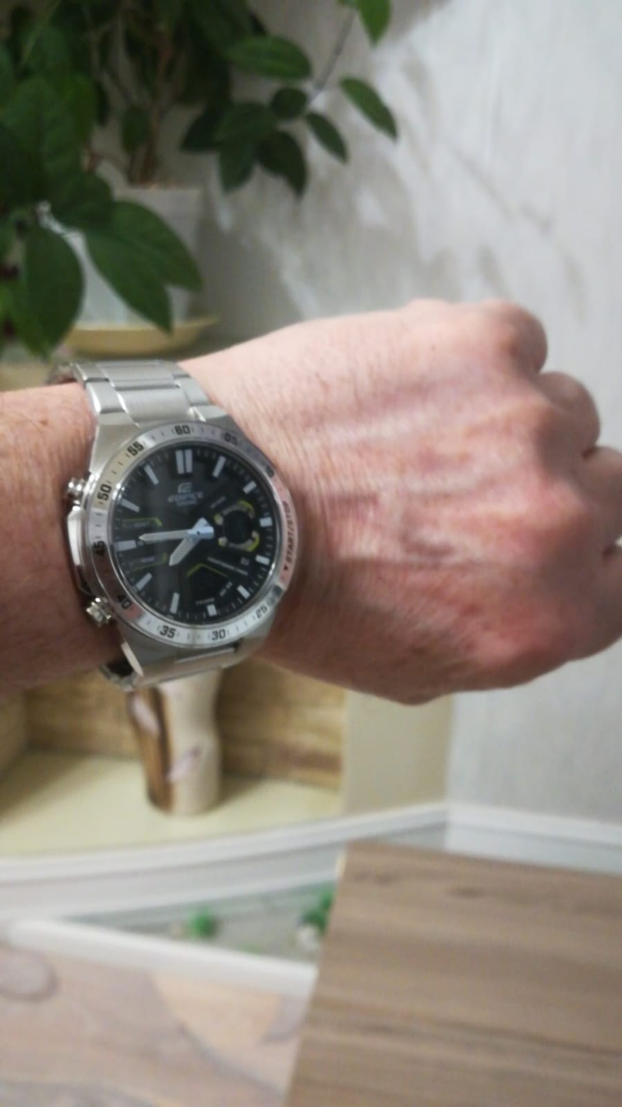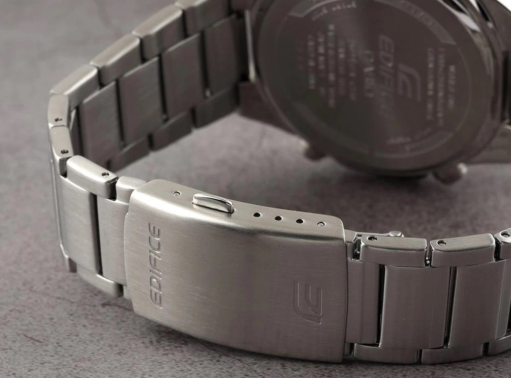 Японские мужские часы-хронографХронографФункция позволяет измерять отрезки времени с особой точностью: часы, минуты, секунды. Верным признаком хронографа является наличие на циферблате 3 дополнительных окошек-счётчиков. Casio Edifice EFV-C110D-1A3VEF. Минеральное стеклоМинеральное стеклоМинеральное стекло представляет собой искусственно выращенный минерал кварца. Такое стекло отличается особой устойчивостью к повреждениям и царапинам. Уступает по некоторым качествам сапфировому стеклу. устойчивое к появлению царапин, обладающее высокой прозрачностью. Корпус часов изготовлен из нержавеющей стали. Светодиодная автоподсветка NeobriteПодсветка NeobriteИспользование светонакопительных составов на основе сульфида цинка или алюмината стронция, яркий свет можно наблюдать на протяжении 6-10 часов после «зарядки» часов около источника света. - при повороте часов в сторону лица подсветка дисплея осуществляется автоматически. Настраиваемое послесвечение 1,5 или 3сек. СекундомерСекундомерСекундоме́р — прибор, способный измерять интервалы времени с точностью до долей секунды. с точностью измерения 1/100 секунды и измерением до 23 часов 59 минут 59,99 cек. ТаймерТаймерОтсчитывает секунды в обратном направлении в заданном интервале времени. обратного отсчета (диапазон времени 24 часа), автоматический календарь, 12/24 отображение времени. Мировое времяМировое время Полезное часовое усложнение, отображающее время в основных городах и известных областях по всему миру, оно связано с часовыми поясами, удобно для путешественников и бизнесменов. – 30 городов (29 часовых поясов). 3 будильникаБудильникБуди́льник — часы, в заданный момент времени подающие звуковой, световой и/или в редких случаях другой сигнал., один с функцией Snooze, ежечасный сигнал. Записная книжка на 30 ячеек памяти для записи имен и телефонных номеров, каждая запись может включать в себя текст из 8 букв и 16 цифр. Класс водозащиты: 100 метров, позволит плавать, нырять и заниматься другими водными видами спорта. Стальной браслет на раскладной застёжкеРаскладная застёжкаТакой тип застёжки используется только на браслетах из металла. Она никогда не раскрывается полностью, происходит разделение на 2 и более частей. Раскладывающая застёжка снизит вероятность потери часов к минимуму..